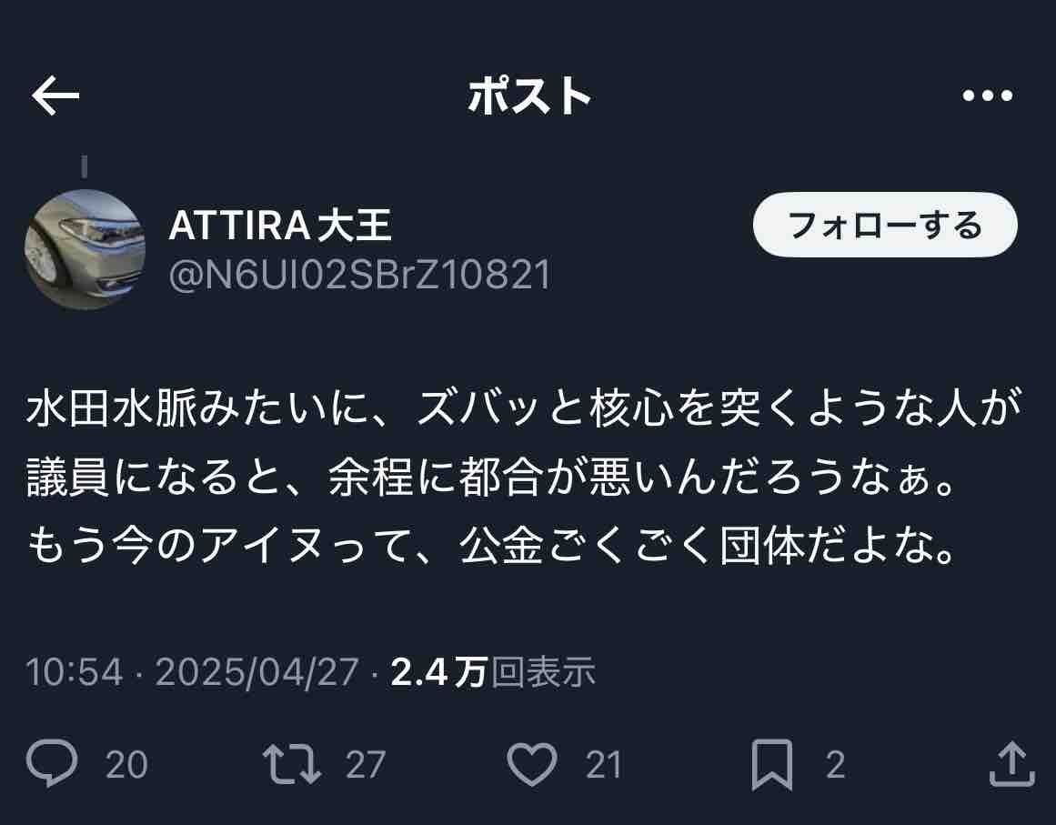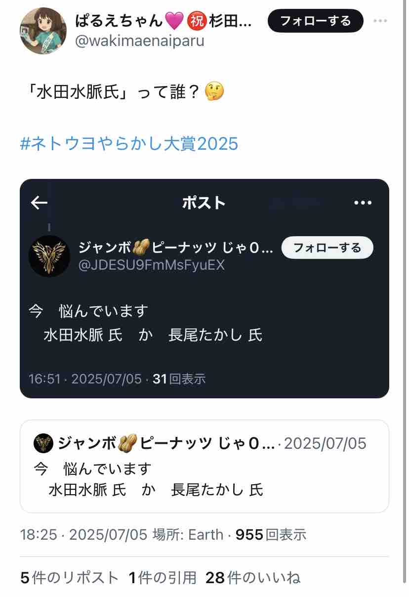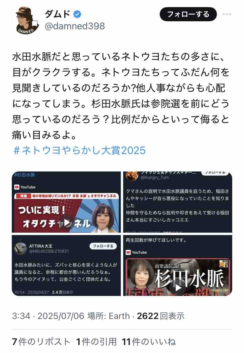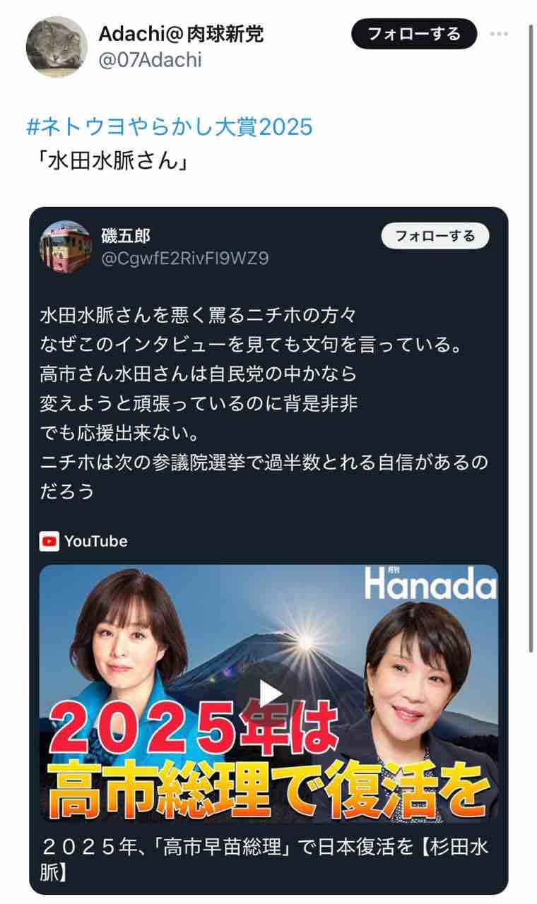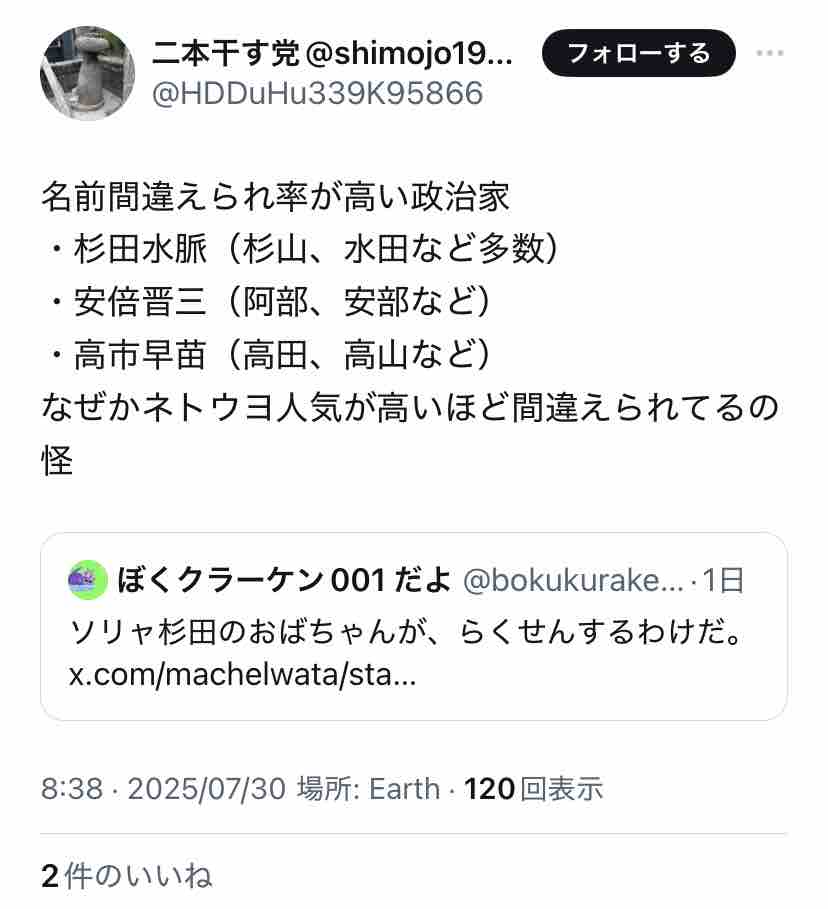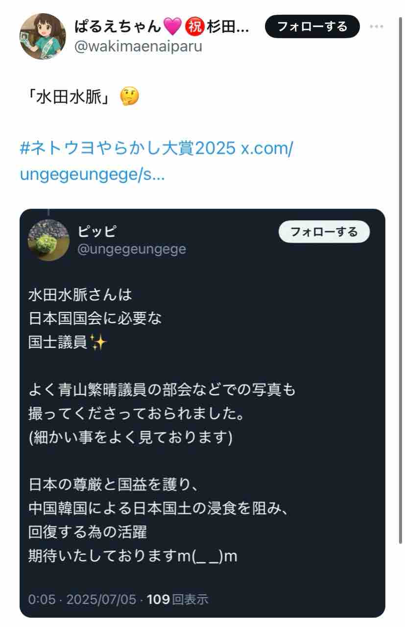 杉田水脈の支持者でありながら、何故か『水田水脈』と誤記する人が続出。