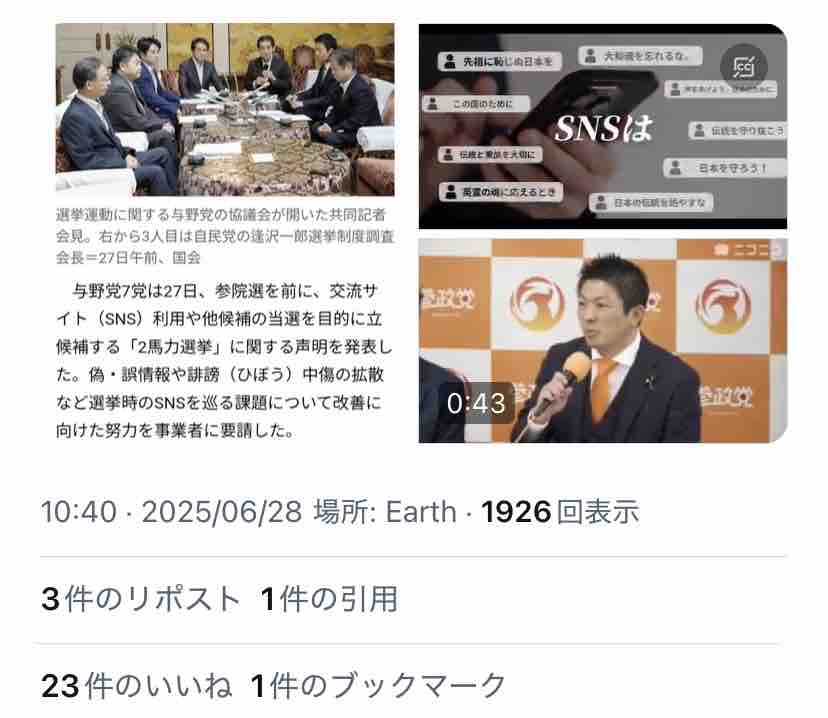 ちなみに↑この最後のやつは参政党のさやママが出てる模様。