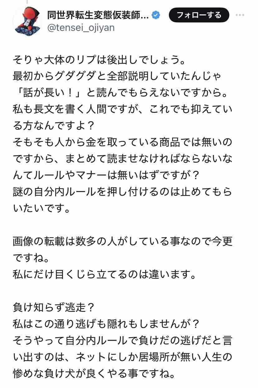 X上で『同世界転生仮装師・オジヤン!(本名:松川慎也)』なるアカウントが参政党・吉川りなの肩を持ち、他の人とレスバ開始