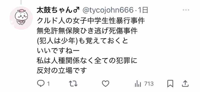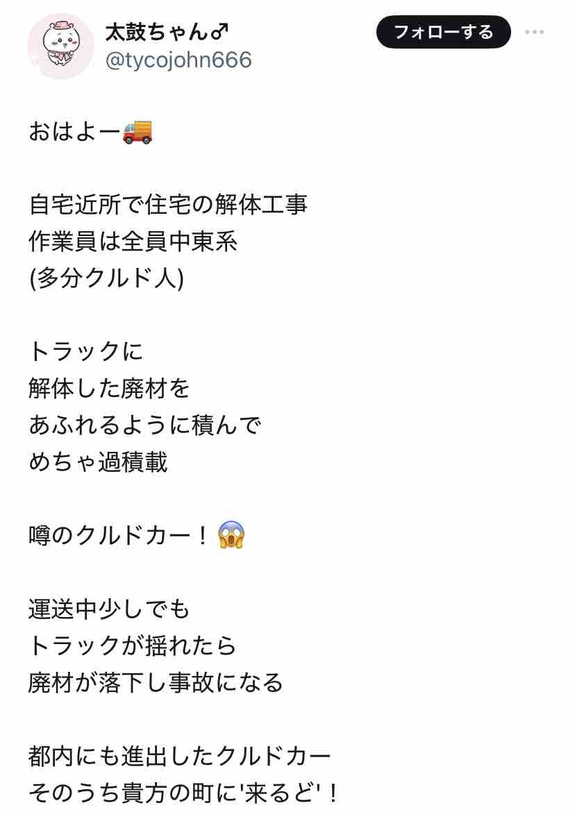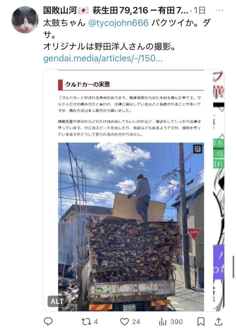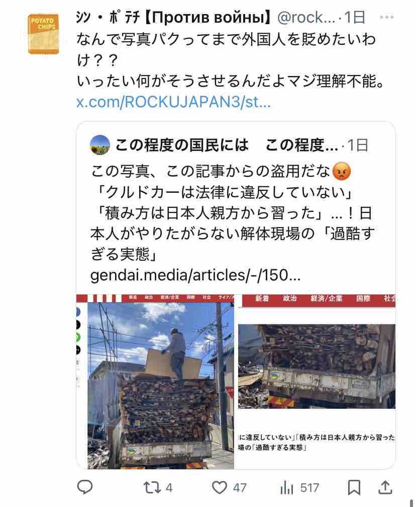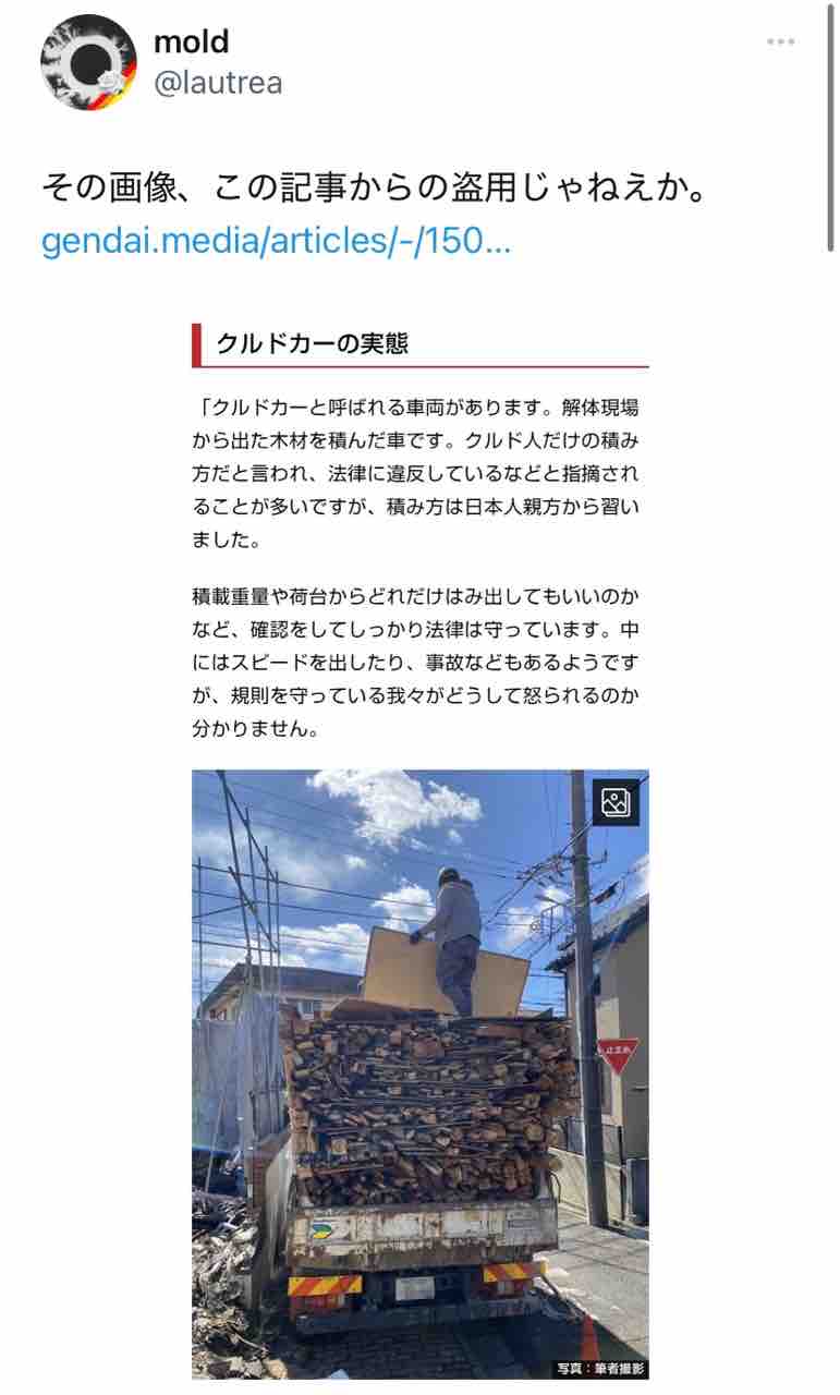「ん? これ『現代ビジネス』に載ってた画像やんけ。しかもその記事、クルド人差別を批判する内容やぞ」