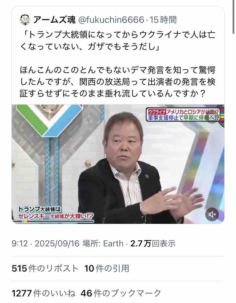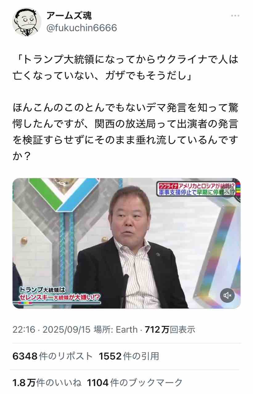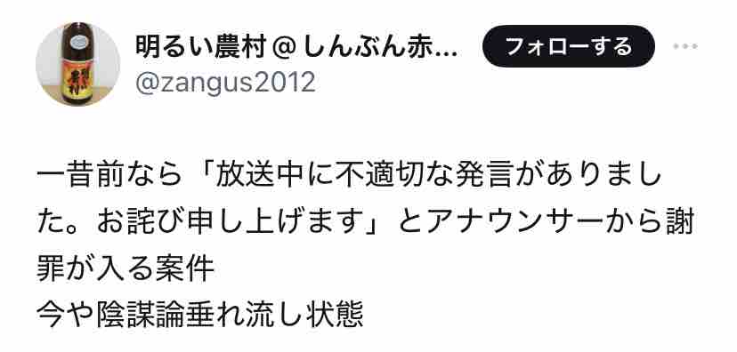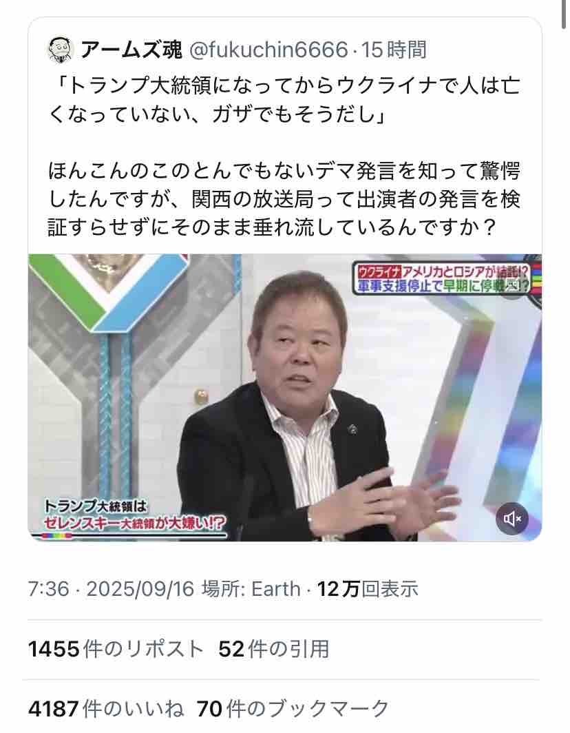 アホの言うことを真に受けるほうがおかしい、という東スポ理論に汚染された電波圏内なんでしょうね