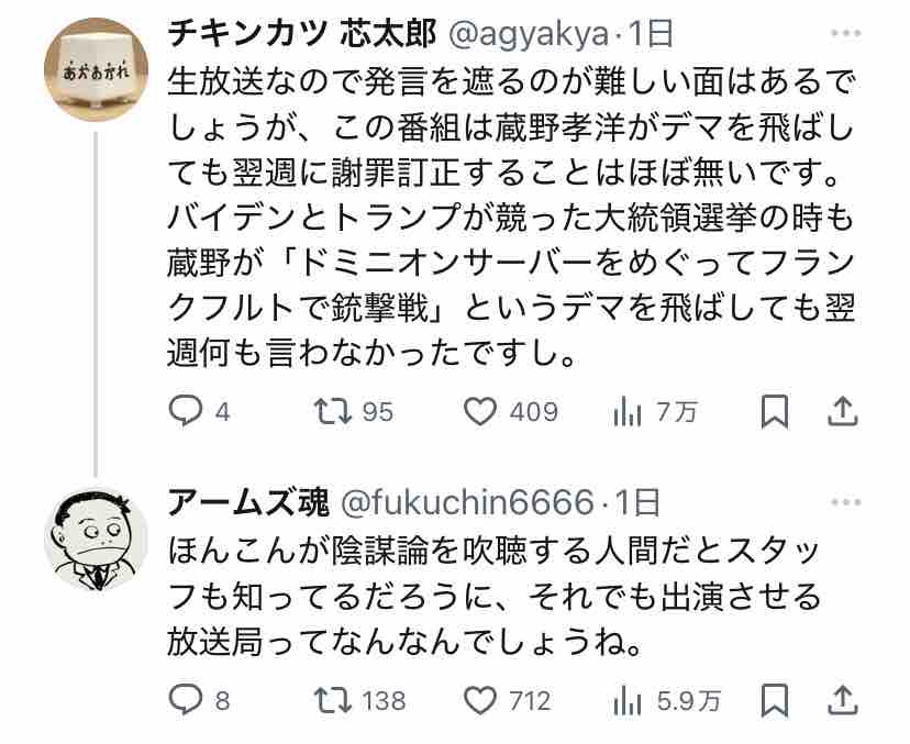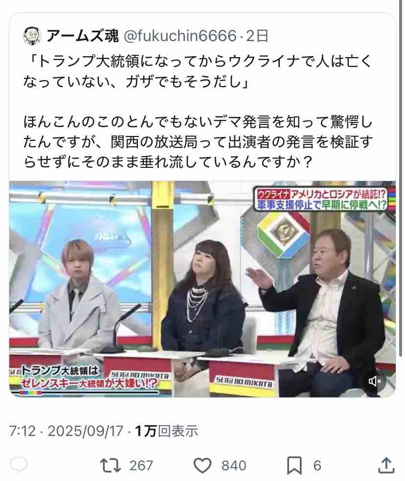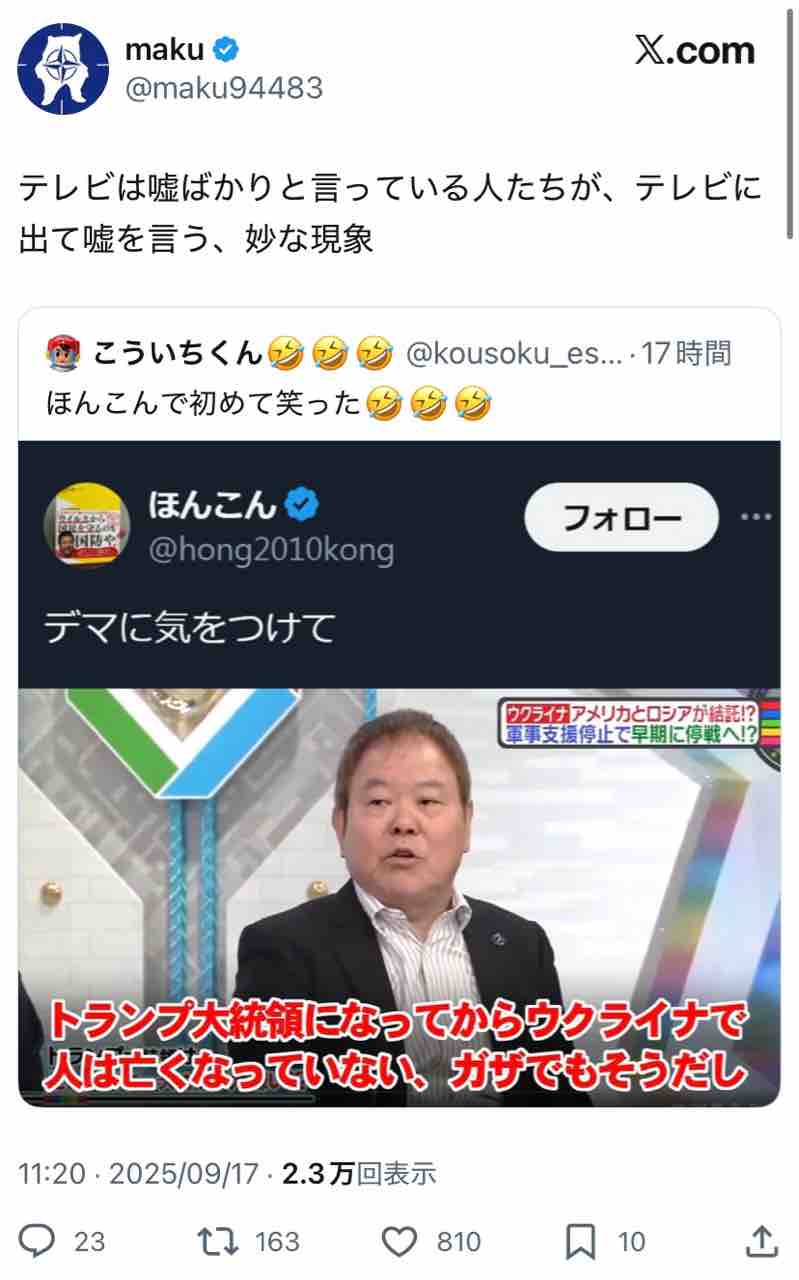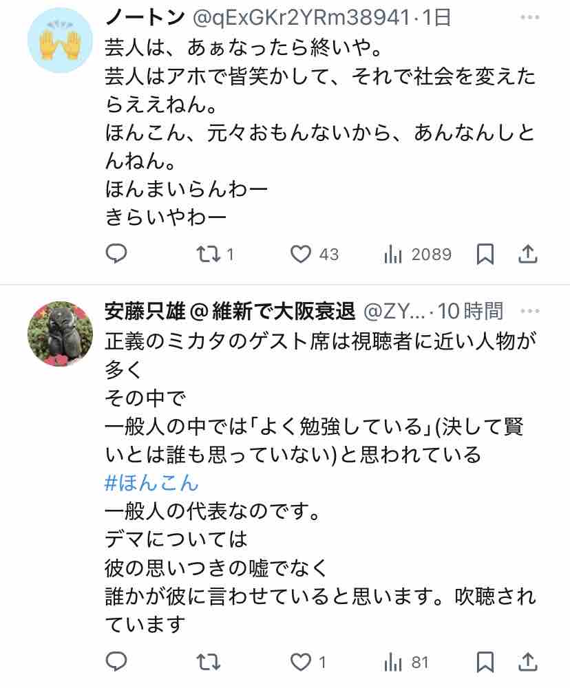 アホの言うことを真に受けるほうがおかしい、という東スポ理論に汚染された電波圏内なんでしょうね