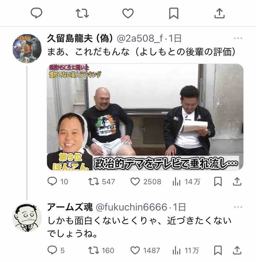 NSC(吉本総合芸能学院)生にまで↑こう思われてんのか…。
