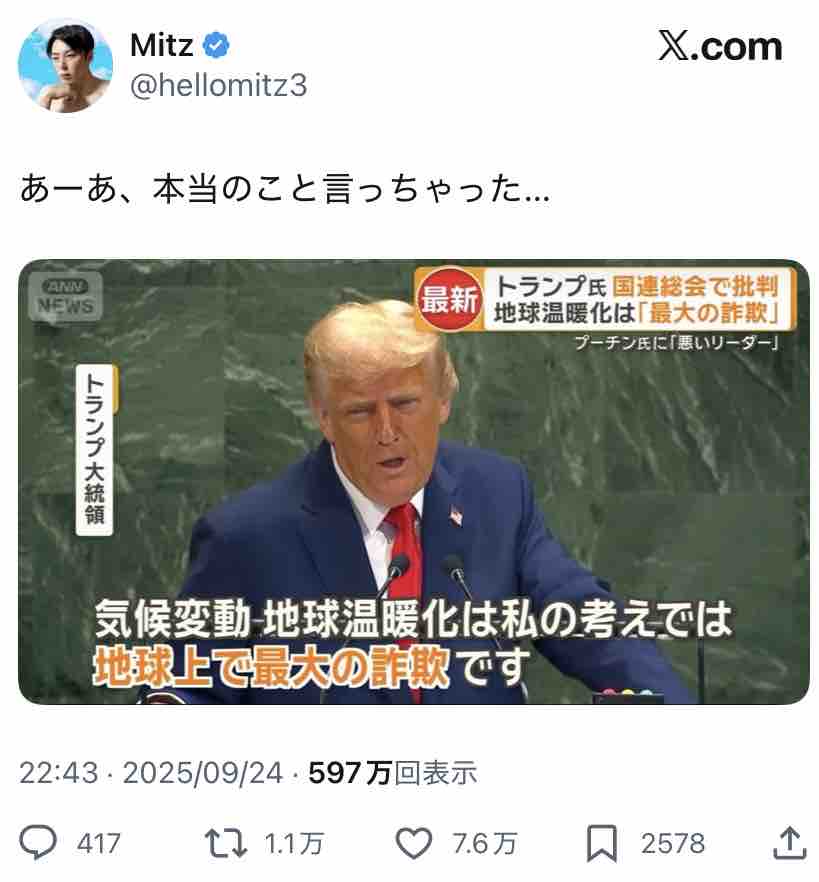 あとトランプは国連総会での演説でいつも通り気候変動への否認主義を炸裂させてましたが…