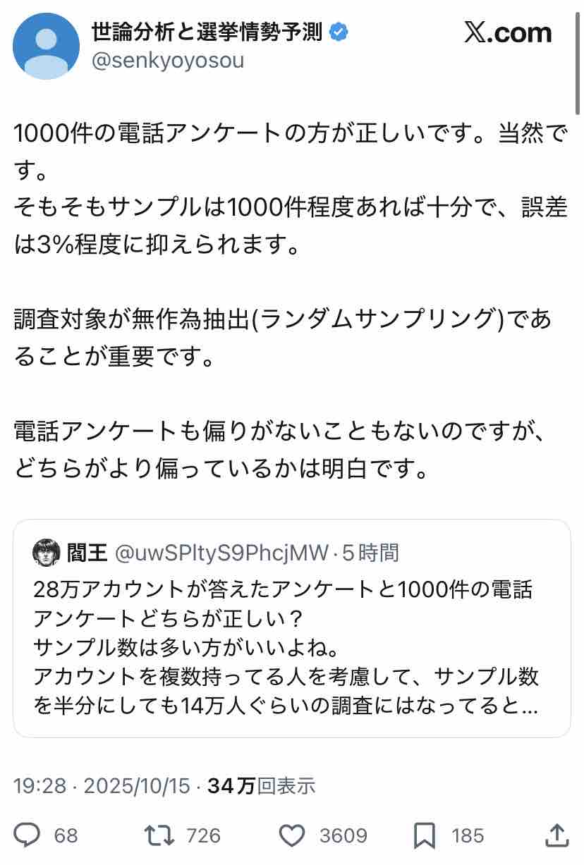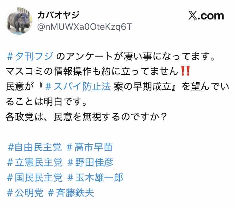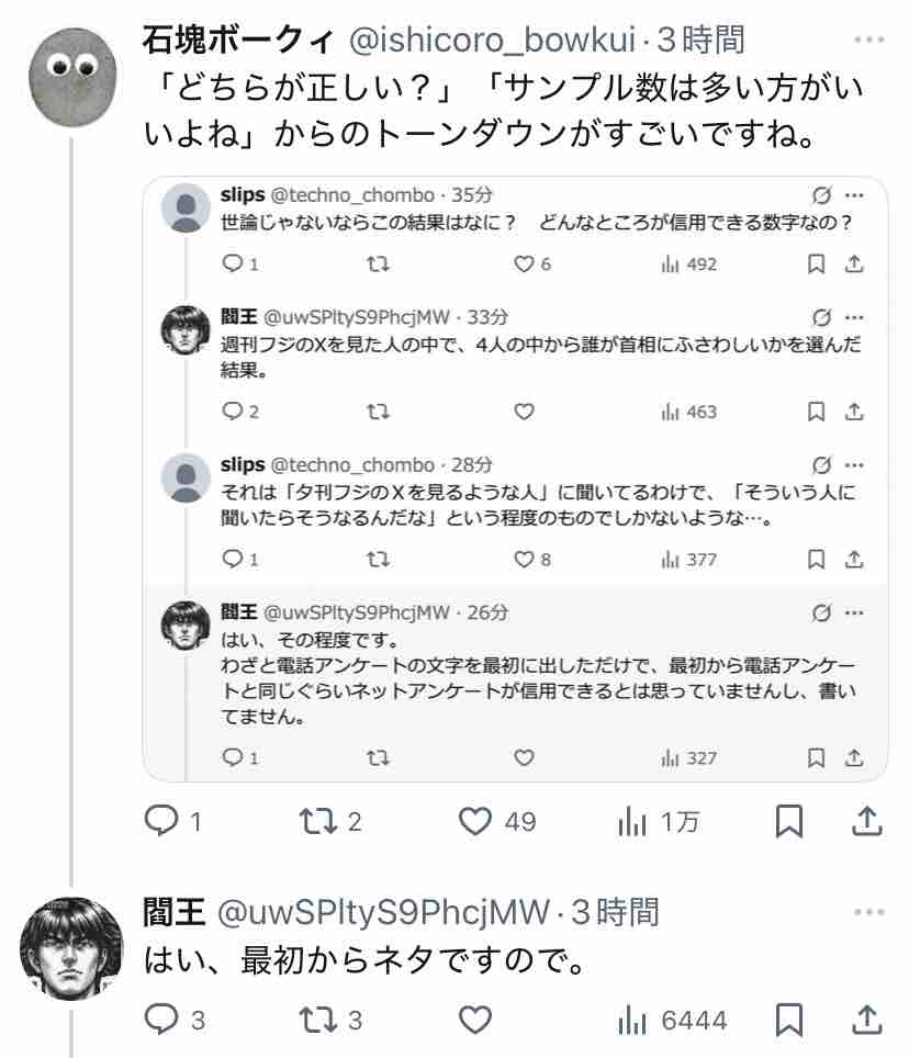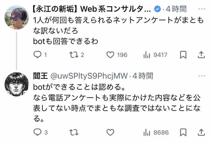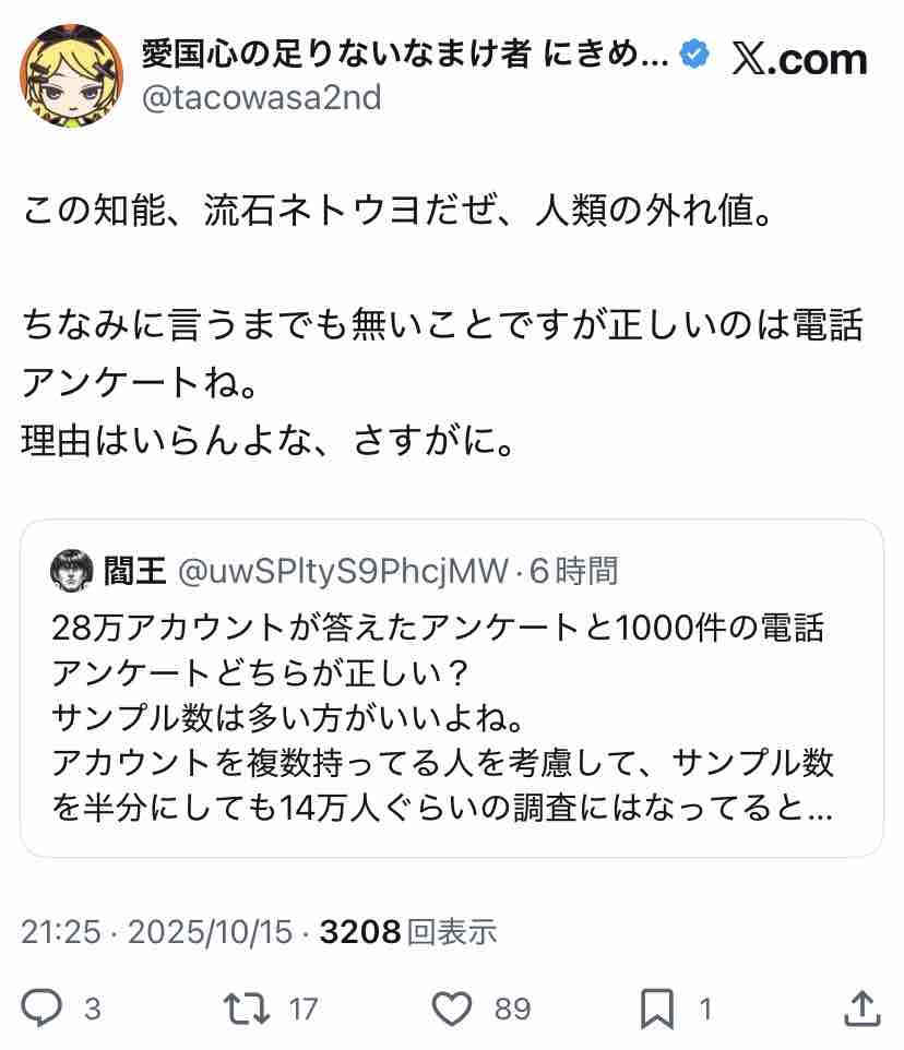 産経系のアカウントがX上でアンケート取った結果なんやし、そらバイアスかかりまくりやろ。