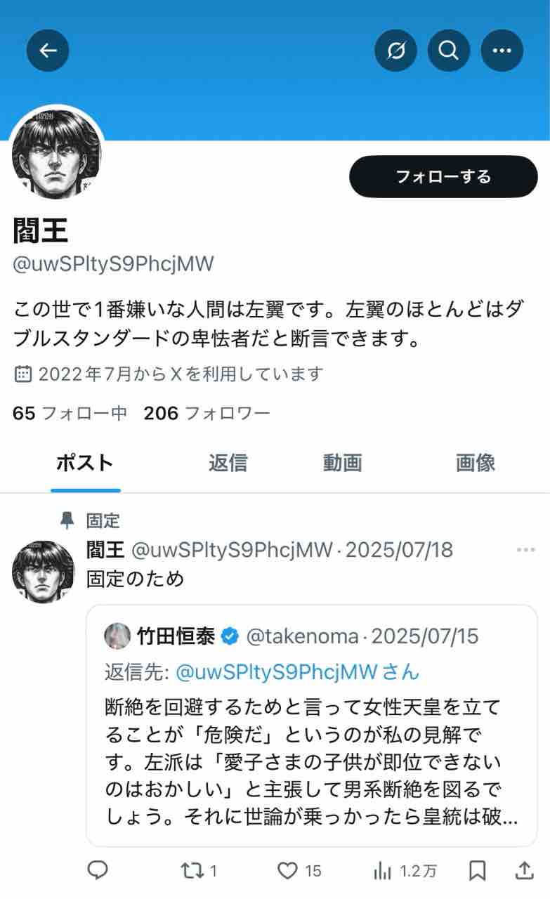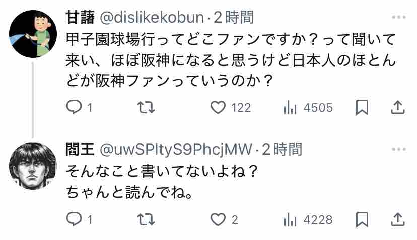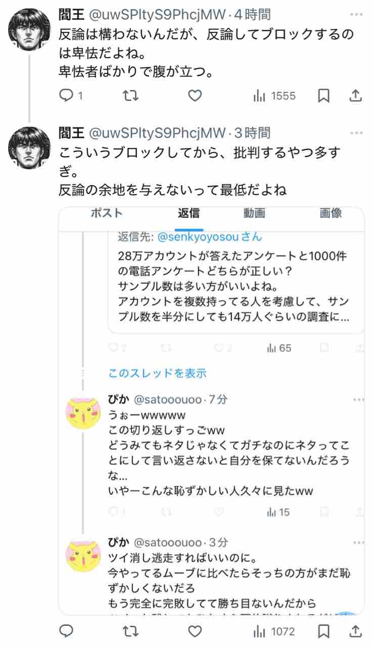 で、この閻王という人へのリプライが↓これ(表示順)。