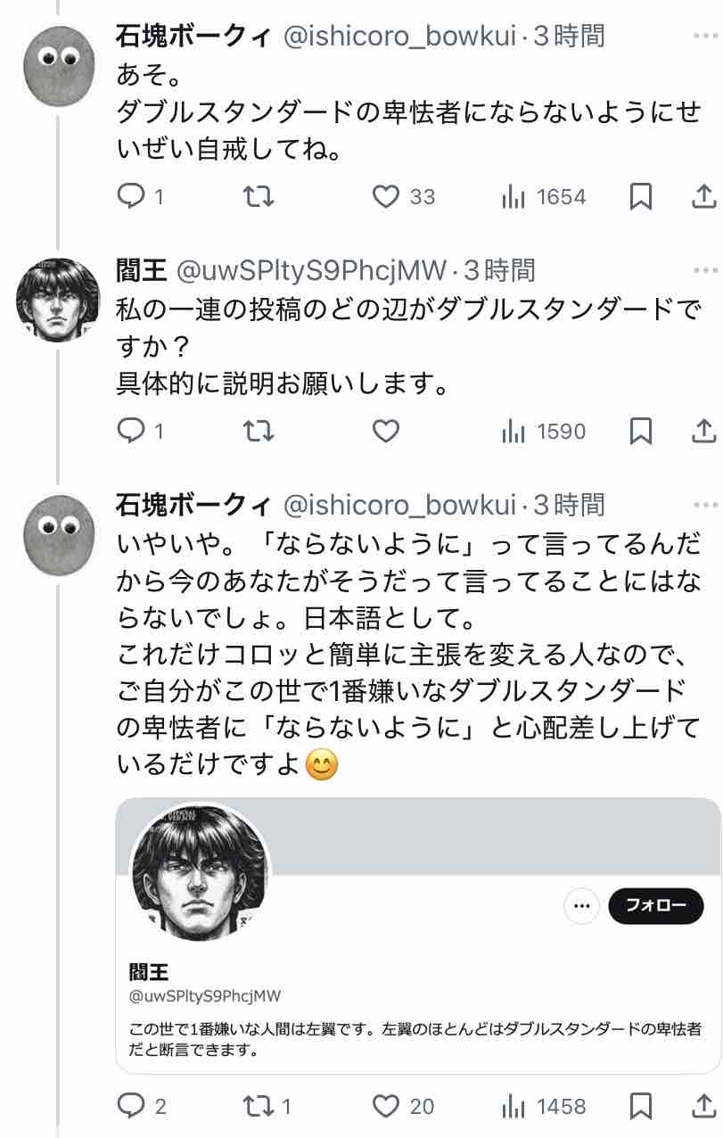 あとネームドリベラルアカウントに↓こんなん言われてはりましたー。