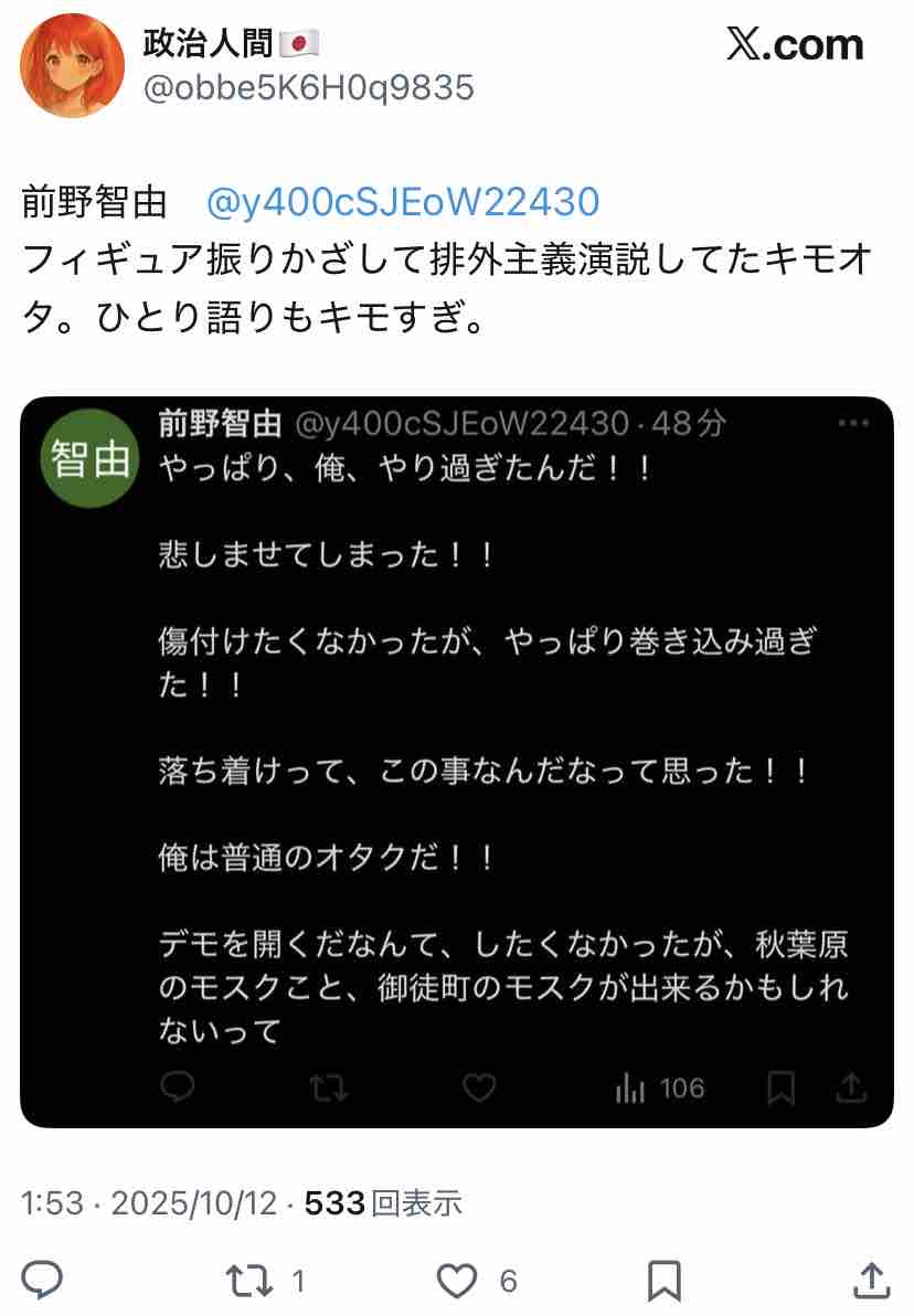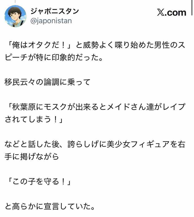 『へずま、参政党支持者「秋葉原にモスクが建てられちゃう!オタク君今すぐ拡散して」本当は建て替えで場所は御徒町』