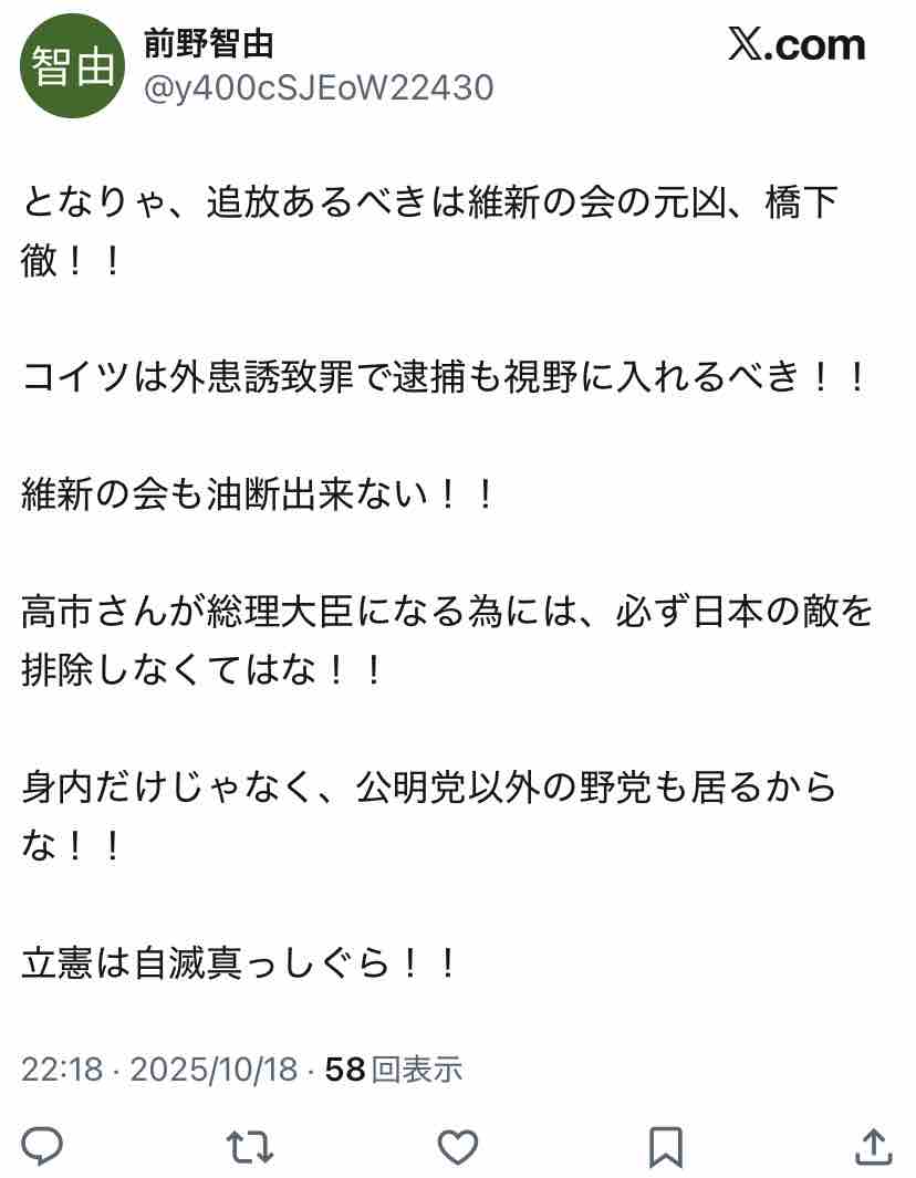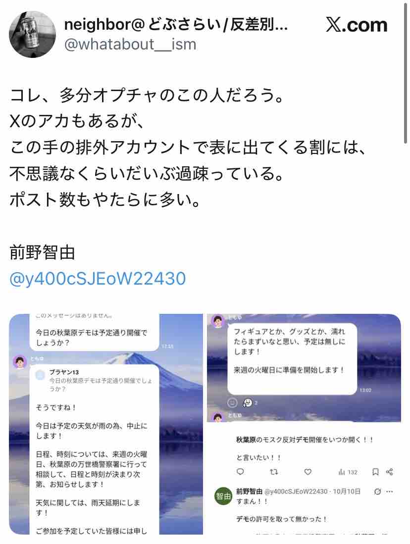 で、↓「前野智由」というアカウントは他にもありまして…