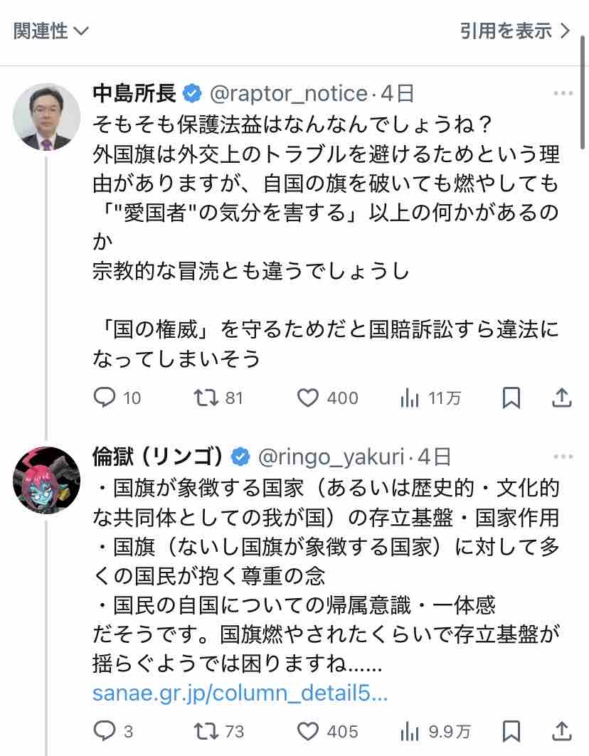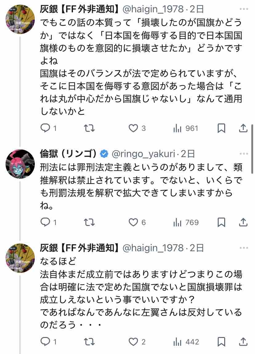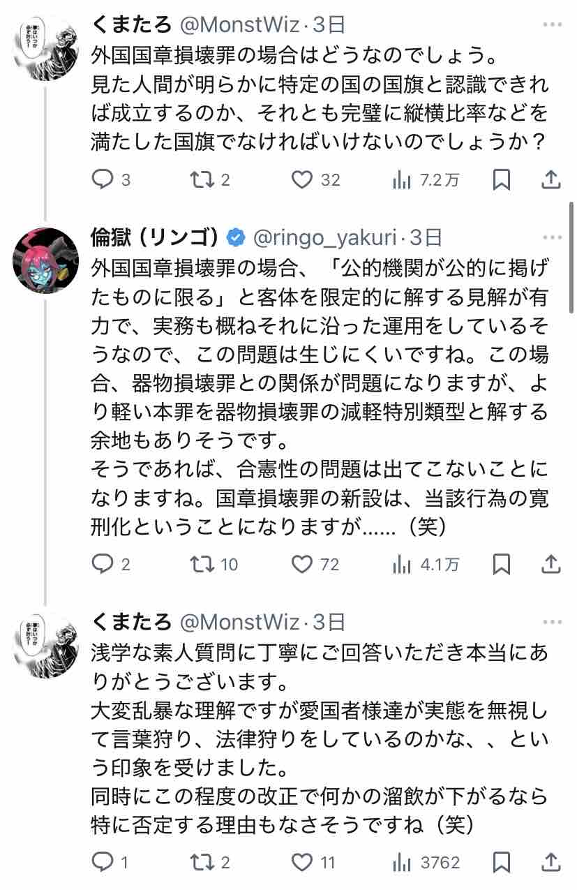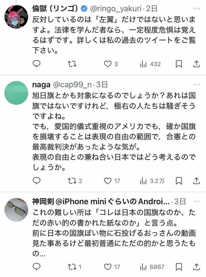 個人的には「ネトウヨが嫌いな政権が誕生しても国旗損壊罪は残るんだよ」ということをちゃんと考えてるのかな、とは思いますね