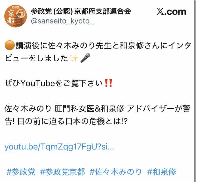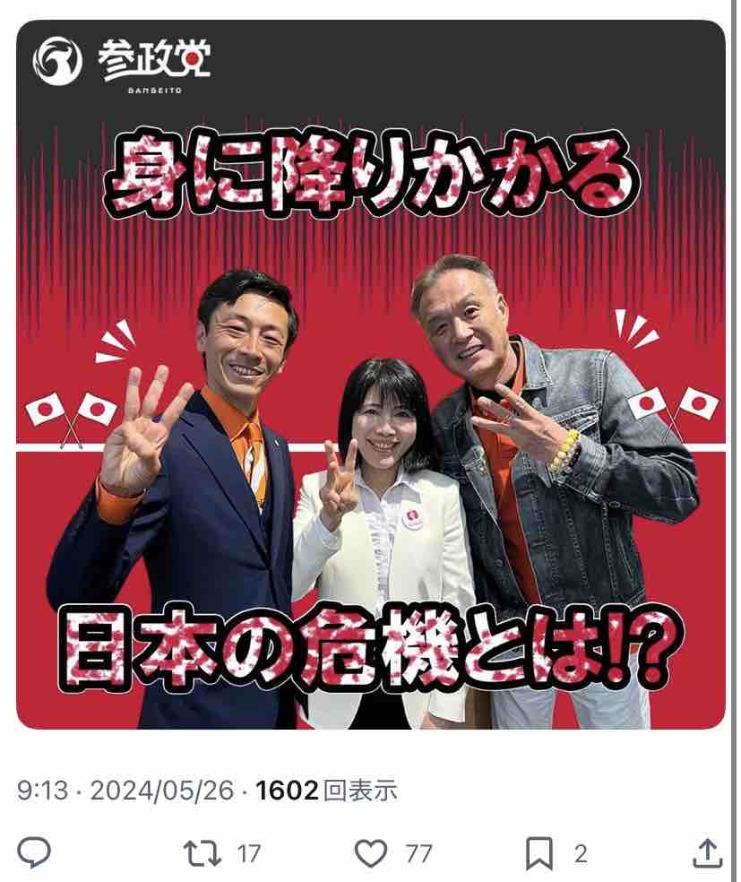 しかし同年5月の時点では↓こんな感じで参政党に接近。