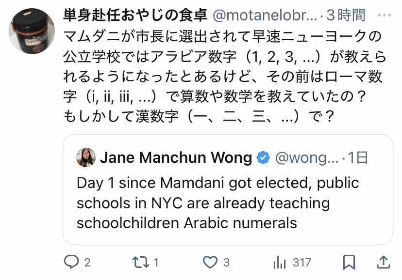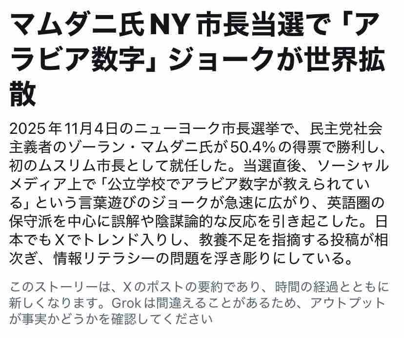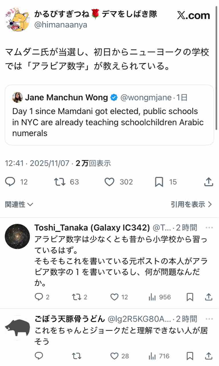 「新市長になって初日に学校でアラビア数字を教えてたらしいぞw」(そりゃそうだろ)