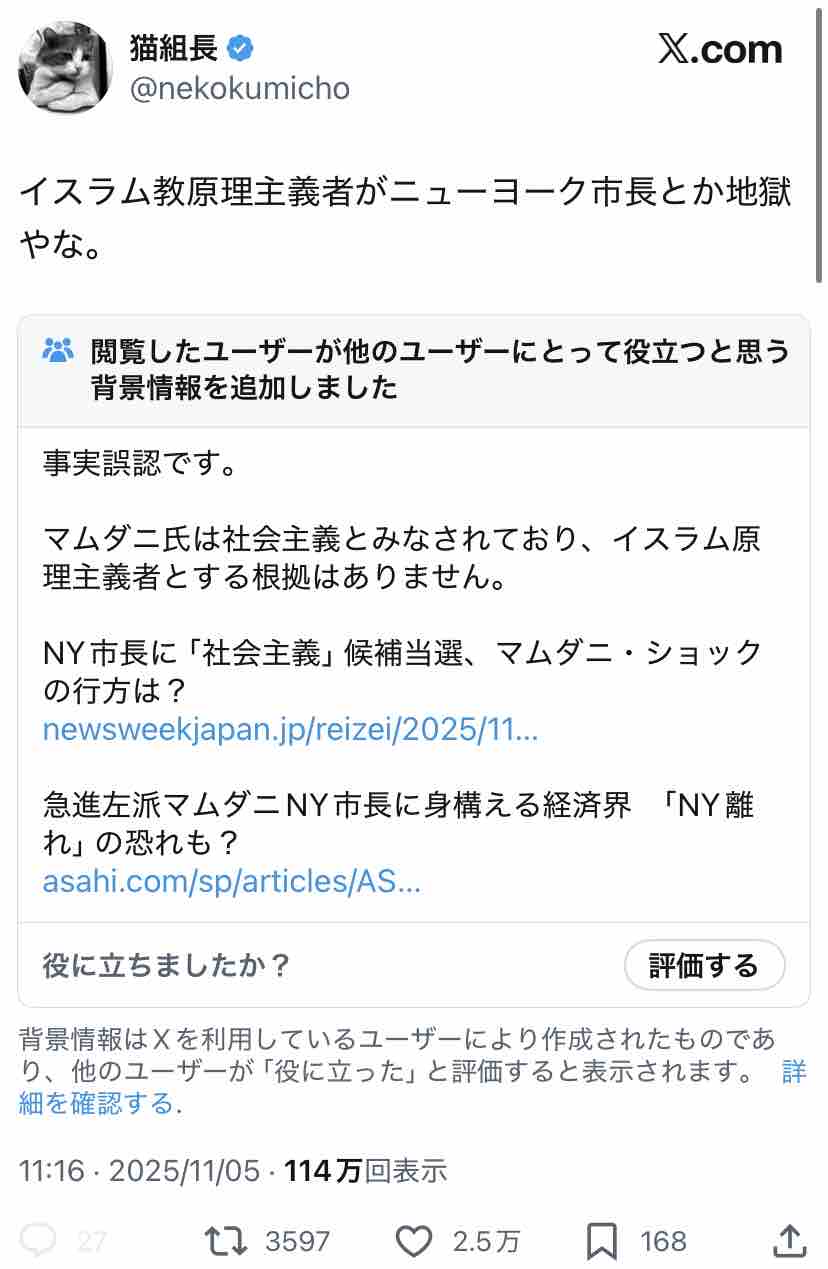 ◉ムスリムのゾーラン・マムダニがニューヨークの新市長に