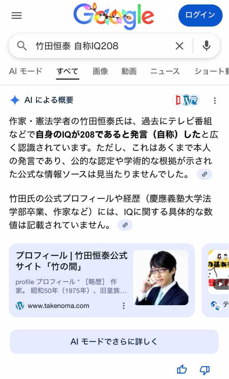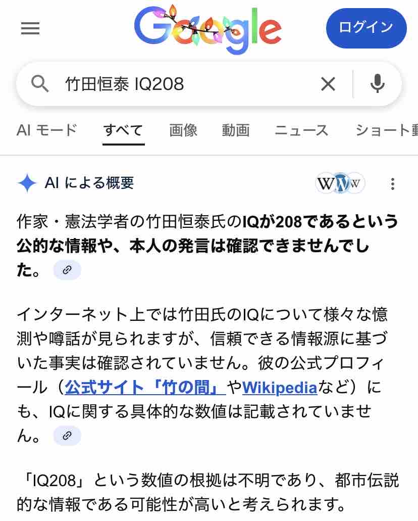 で、竹田恒泰のIQが208ってソースは何よ? と思って調べたのですが…AIによれば↓こんな。