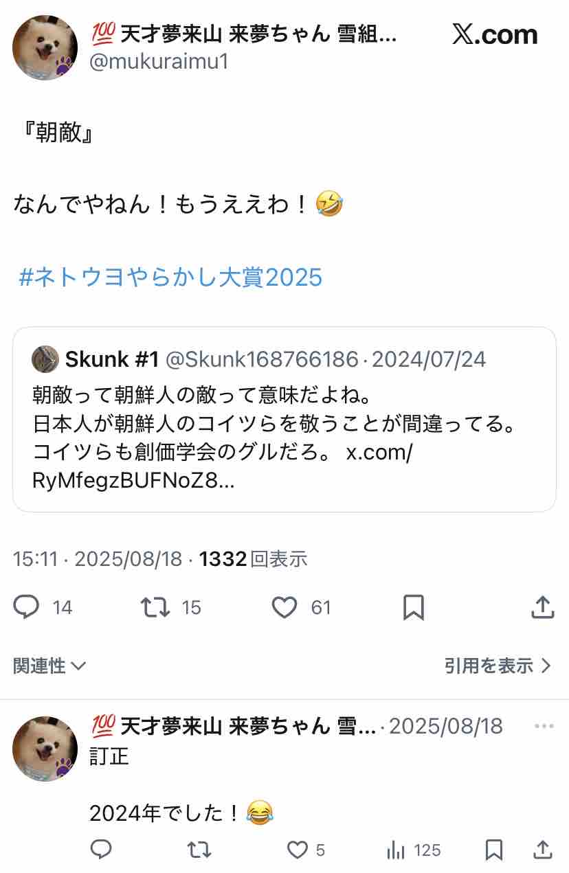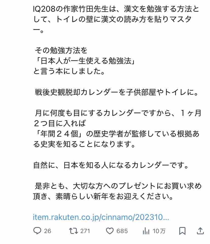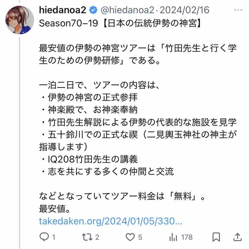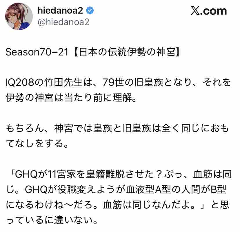 ちなみにX上で「竹田恒泰はIQ208」と主張してるのは大半がこの人とその別アカ。