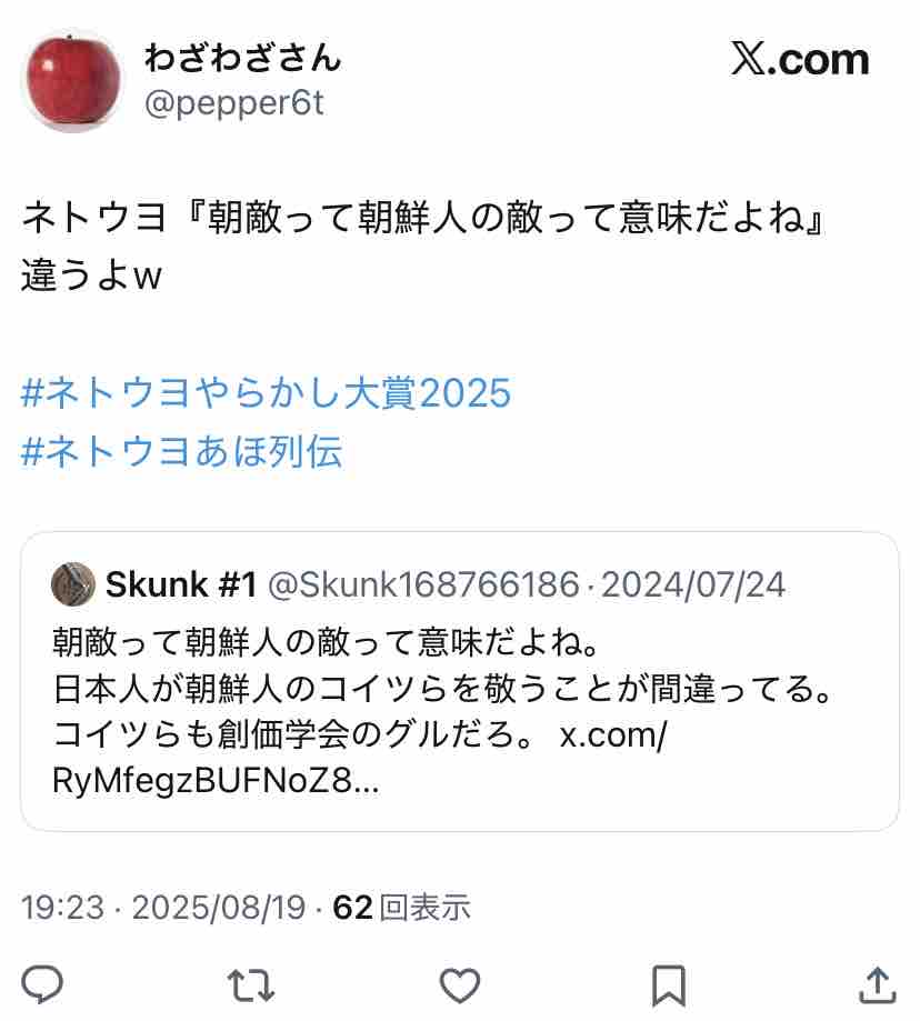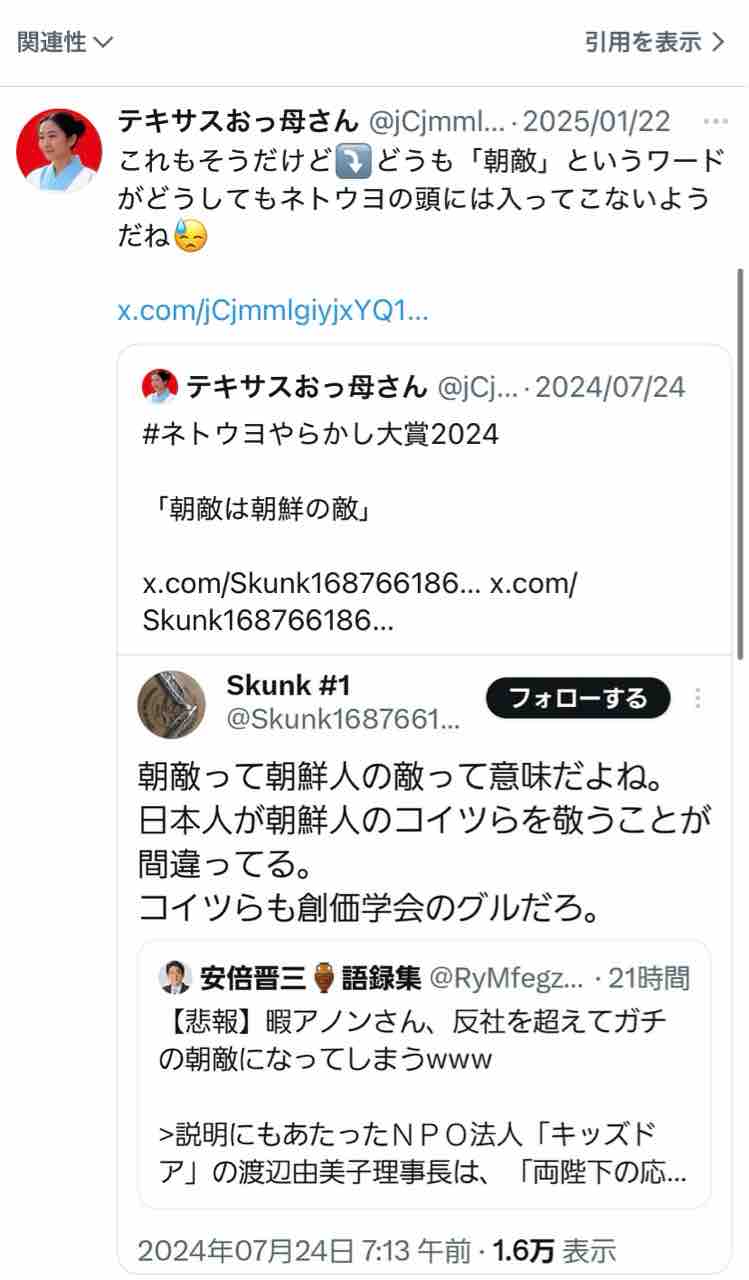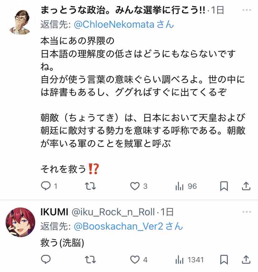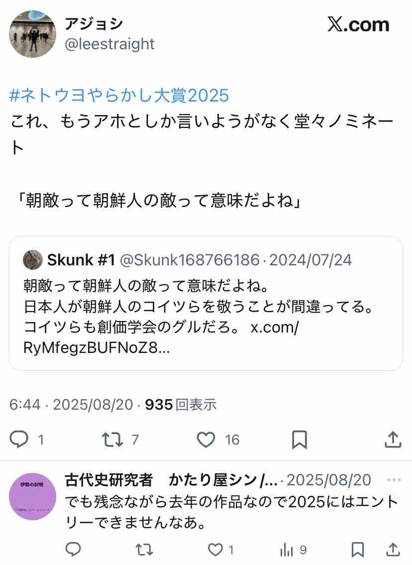 未だに朝敵のこと朝鮮の敵って思ってる方いらっしゃるんですね。古のネトウヨの間違いで「俺は朝敵ではなく韓敵」なんてのがありましたが…