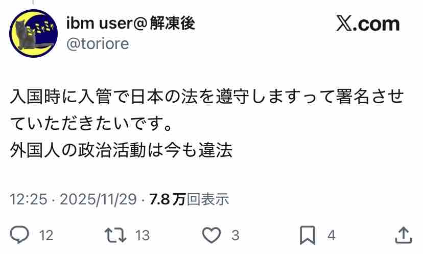 ↑『外国人の政治活動は今も違法』だそうです。