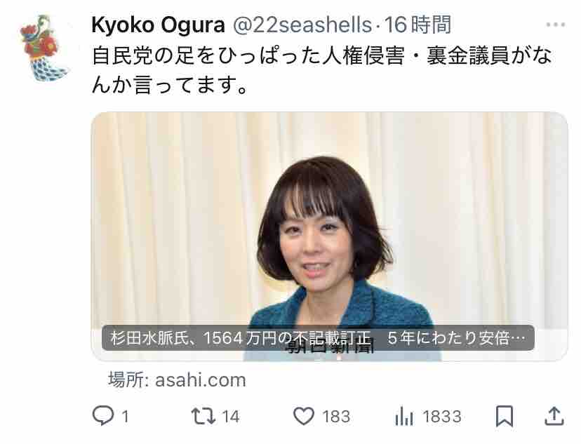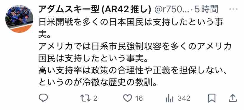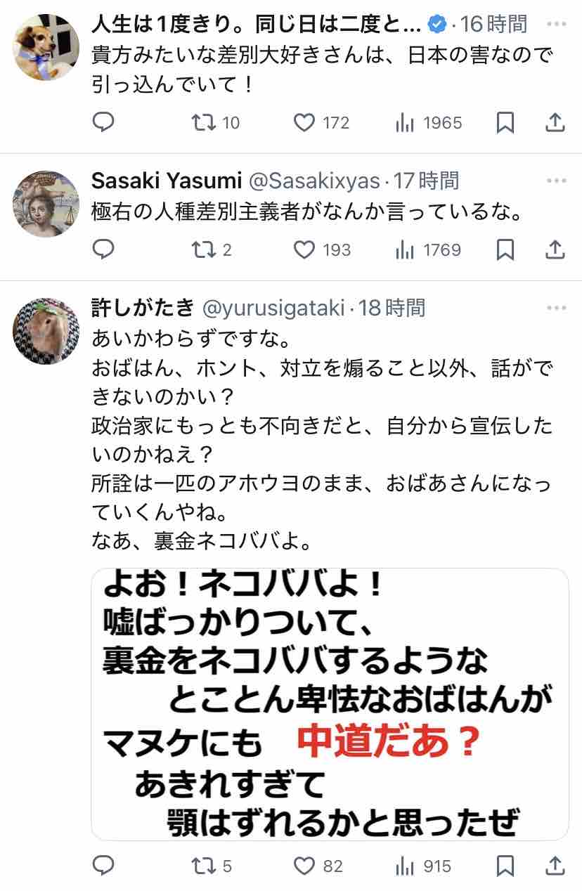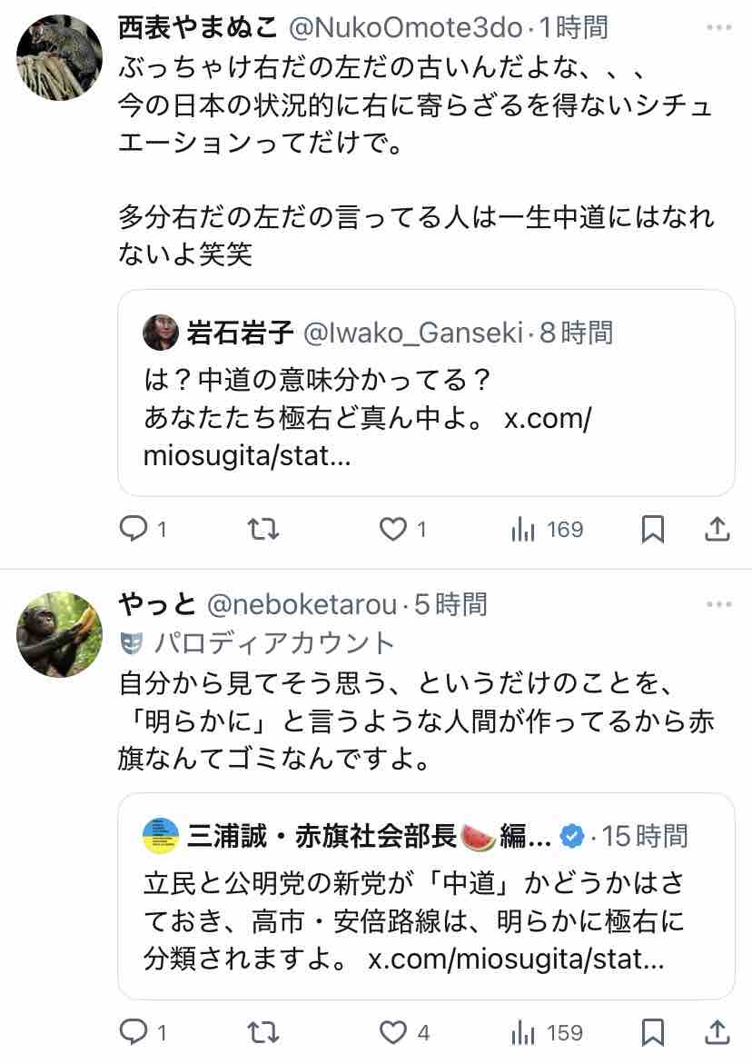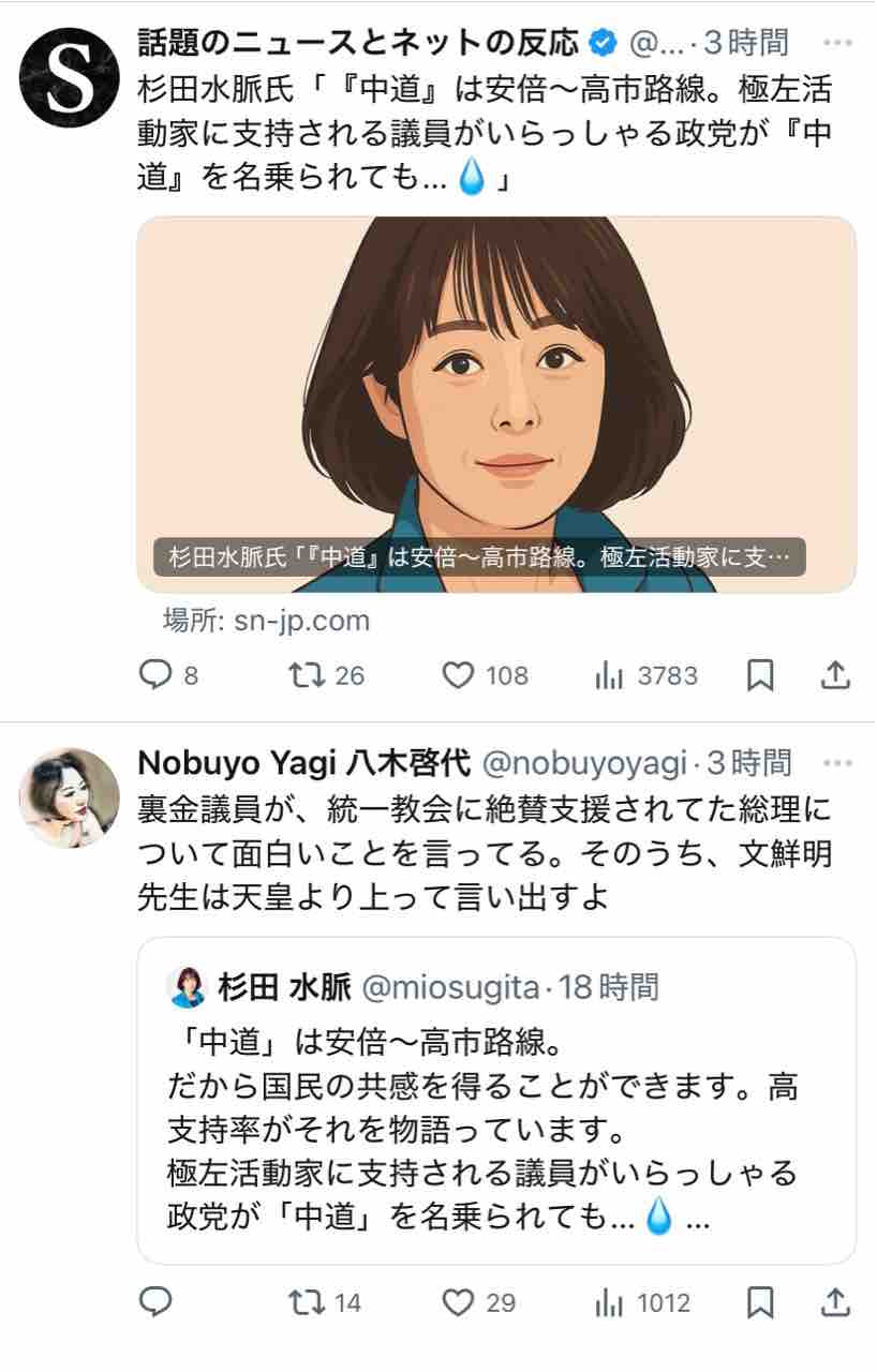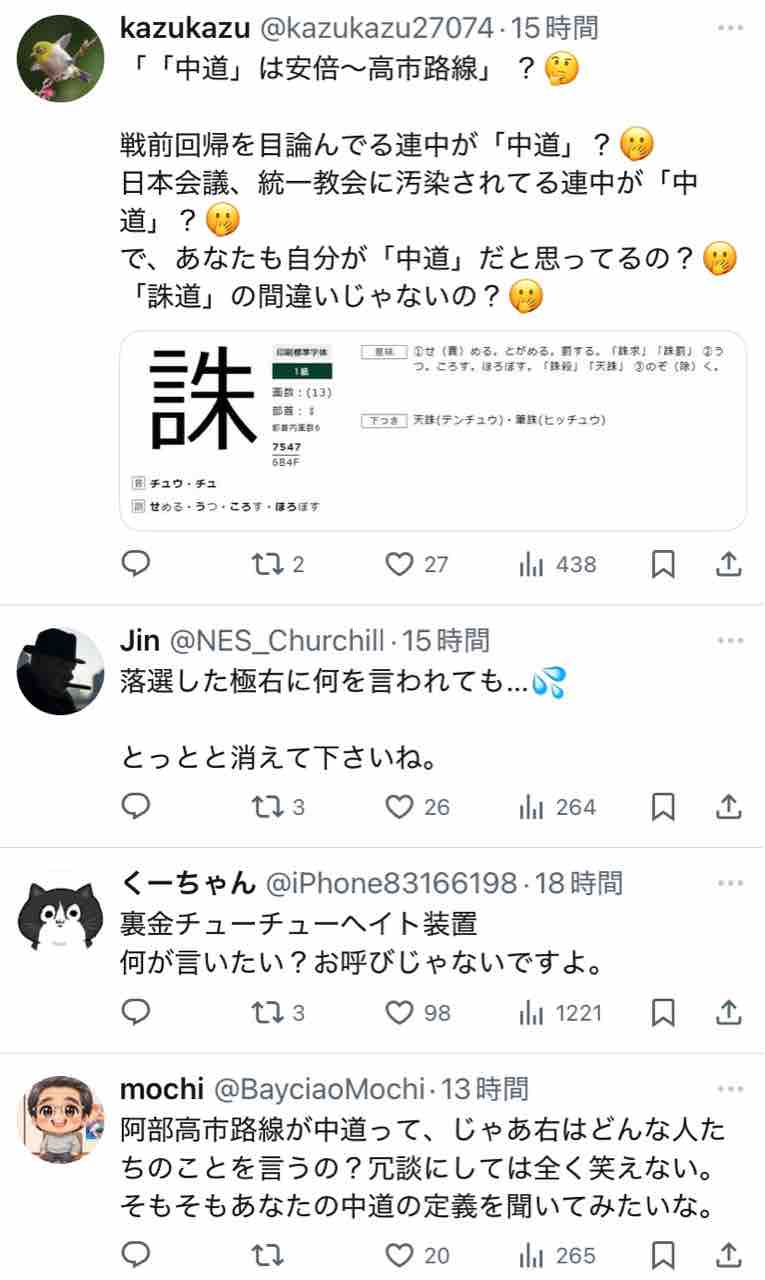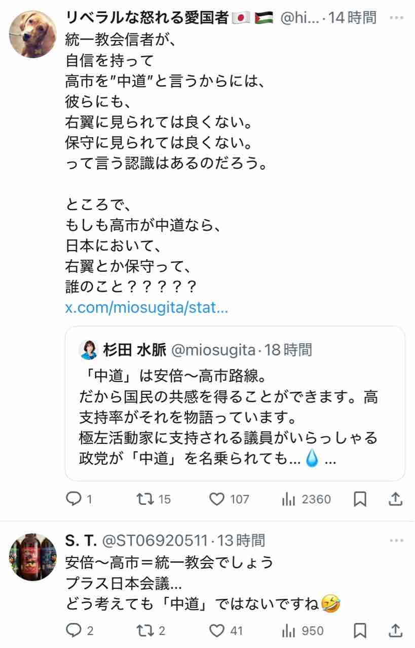 極右活動家である氏が支持する安倍~高市路線は逆説的に中道ではないということになりますな