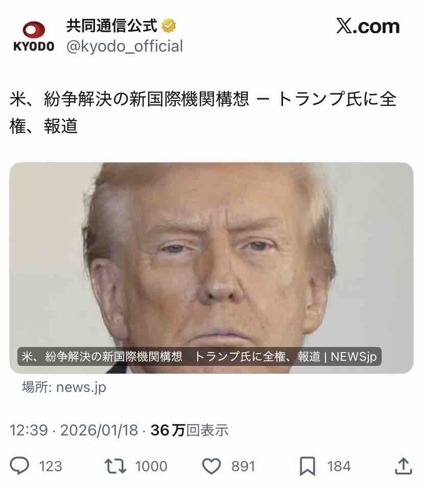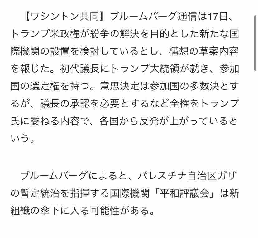 『米、紛争解決の新国際機関機関構想 トランプ氏に全権、報道』