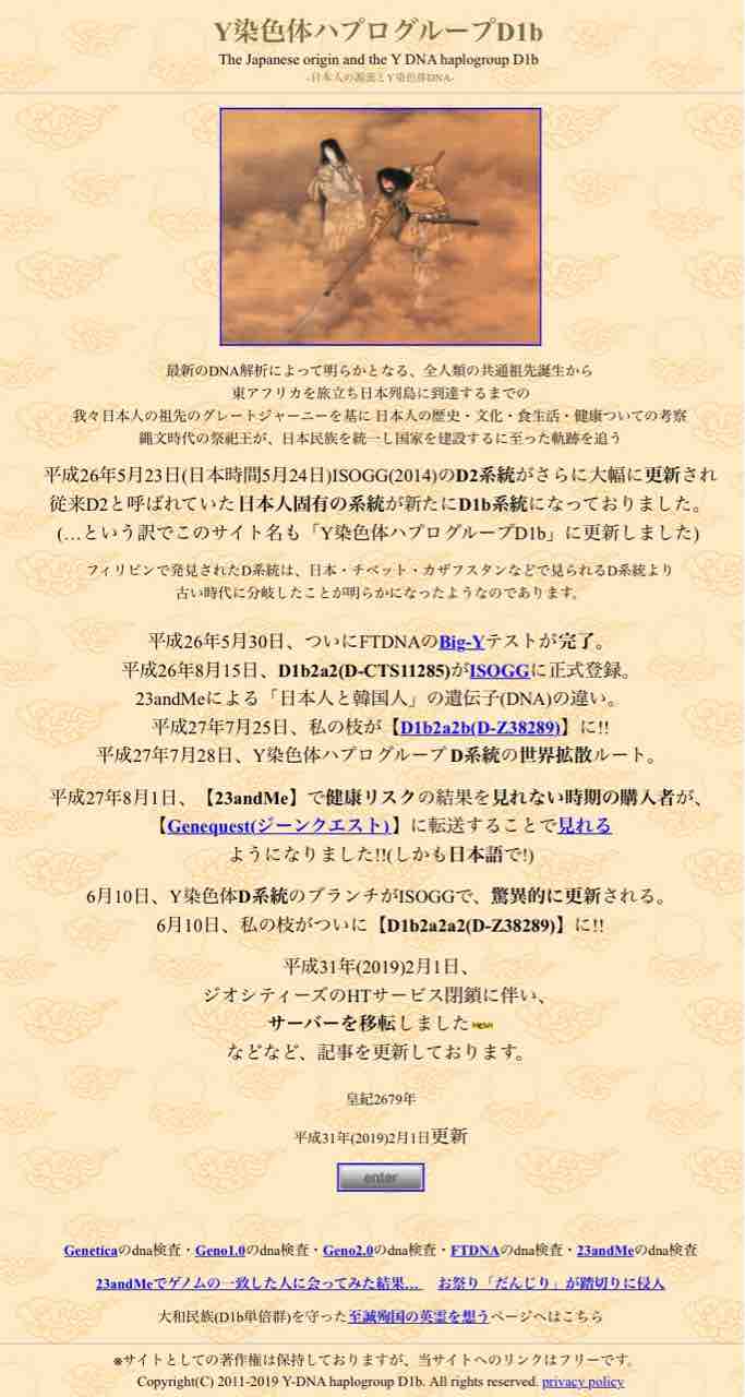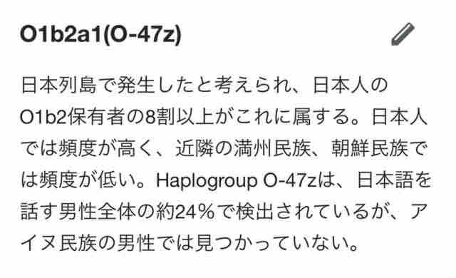 『俺は既にジェネライフで縄文人のY染色体ハプログループD1bとハッキリ判明。皇室も源氏も足利氏も徳川氏も伊達氏も全部そう。因みに藤原氏の弥生系も日本オリジナルで半島由来じゃないよ。』