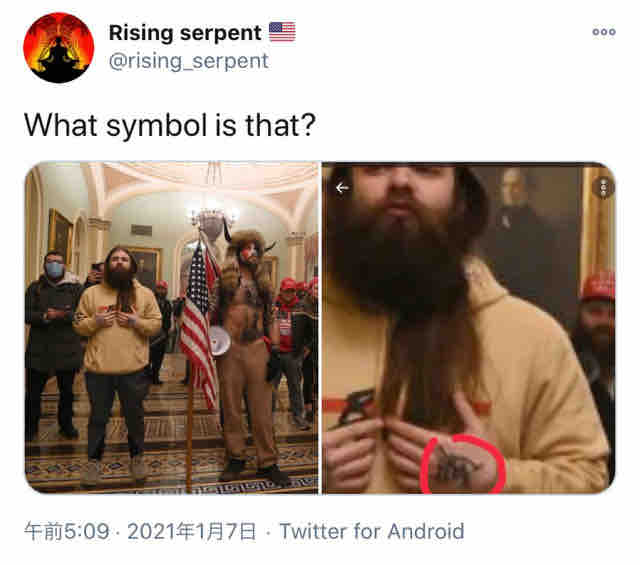 というか、そもそもこの人物はJake AngeliというQアノン・シャーマン(何だそりゃ)で、そちら界隈では有名な人物です。