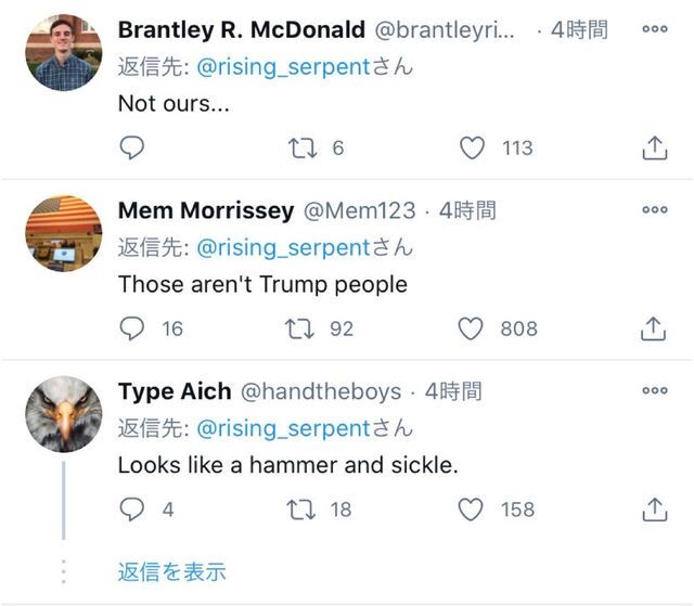バイデン派かトランプ派か分かりませんが、写真に写ったグループの手の甲には、バイデンを支持している極左暴力集団ANTIFAのタトゥが彫られいるので、トランプ支持者になりすましたANTIFAだ。 https://mixi.at/a1Jq90Z設定
