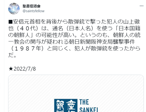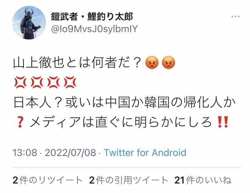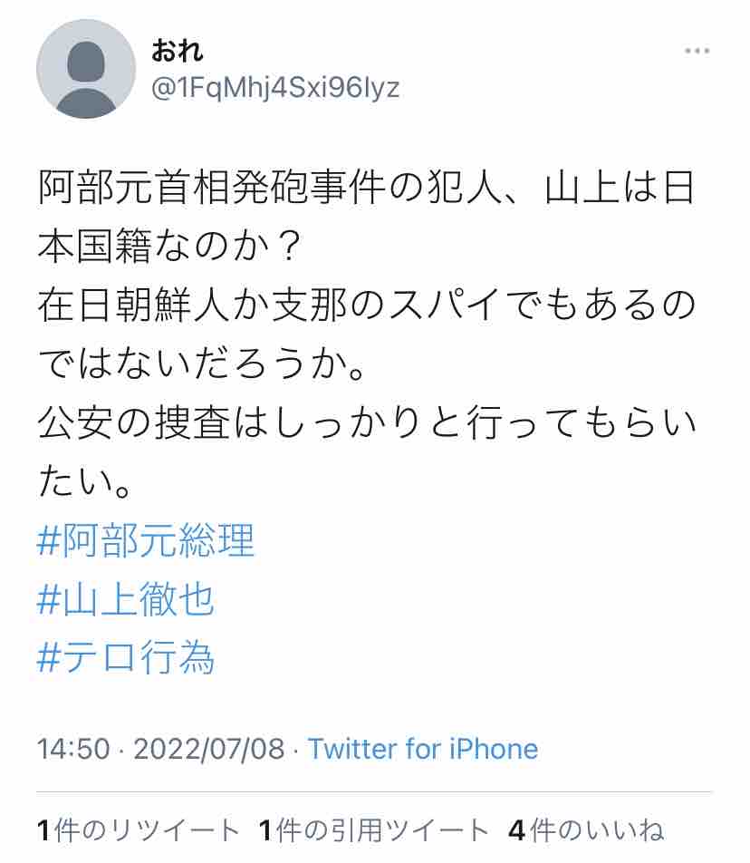 『犯人の山上って、名字が韓国系だなぁ…』とか言ってる人までいますが…