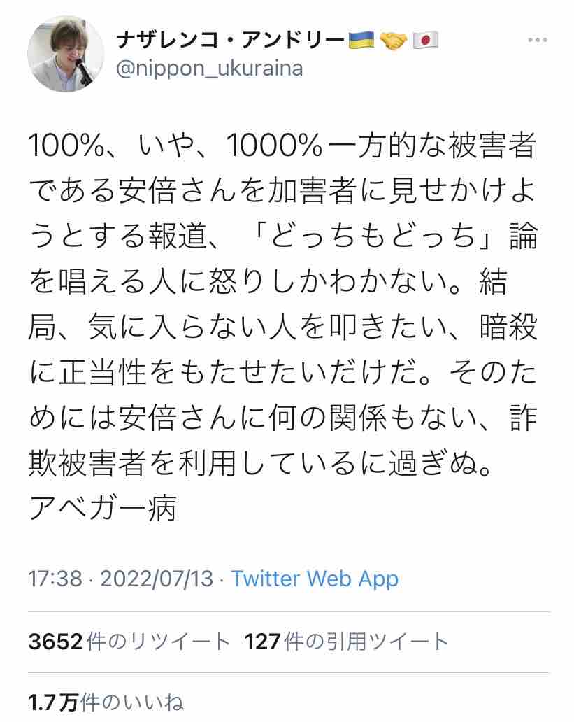むしろ安倍さんが左翼のヘイトスピーチに殺されたようなもんなんだけど