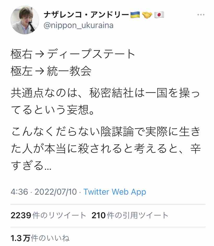 と陰謀論扱いするけど、ディープステートと違って統一教会は実在するし、その有害性も自民とのつながりも証明済みですよね。