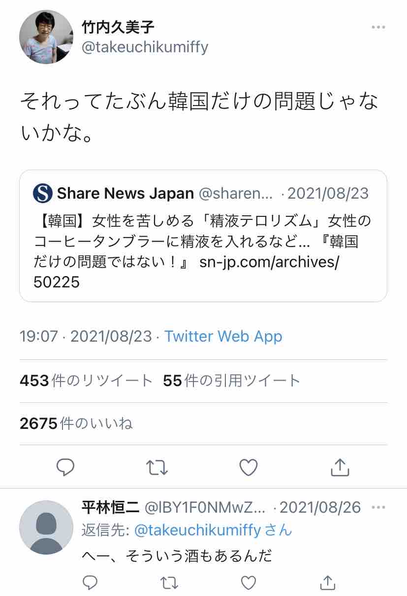 《【韓国】女性を苦しめる「精液テロリズム」女性のコーヒータンブラーに精液を入れるなど… 『韓国だけの問題ではない!』》