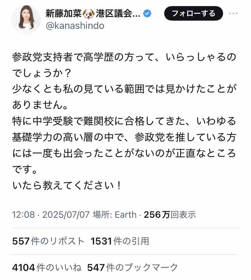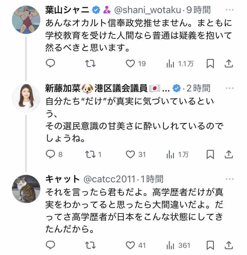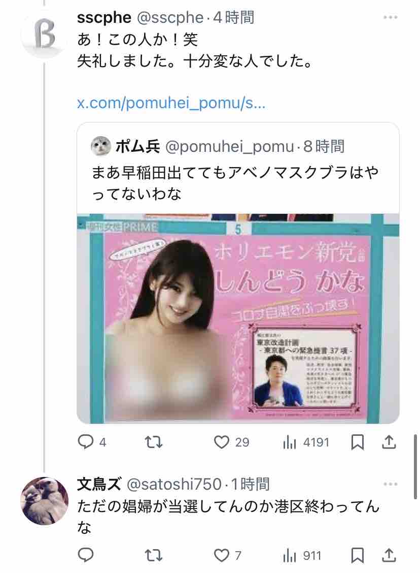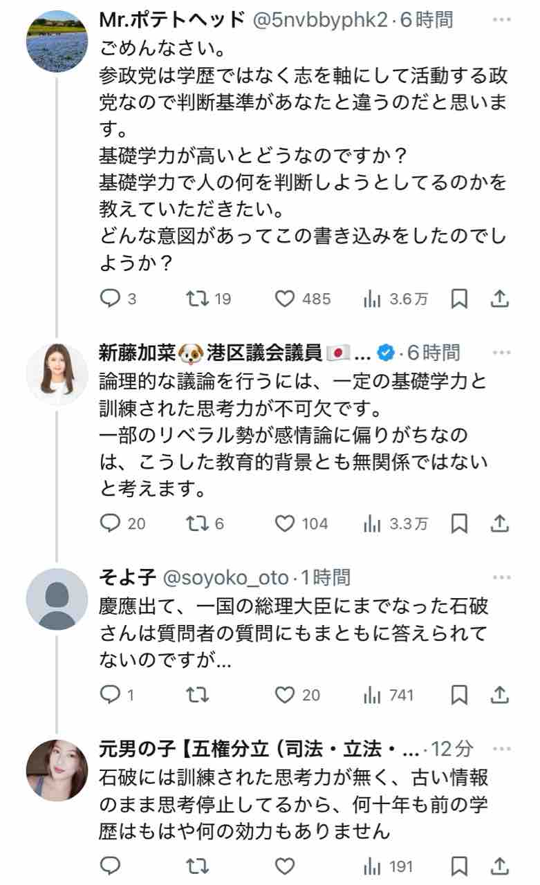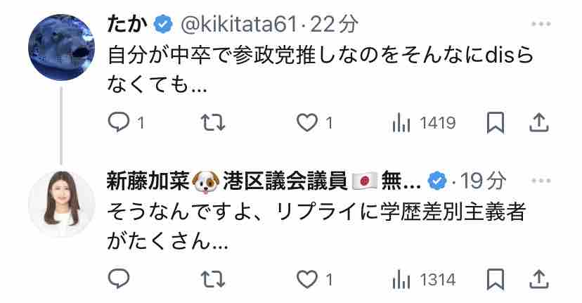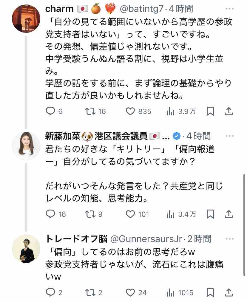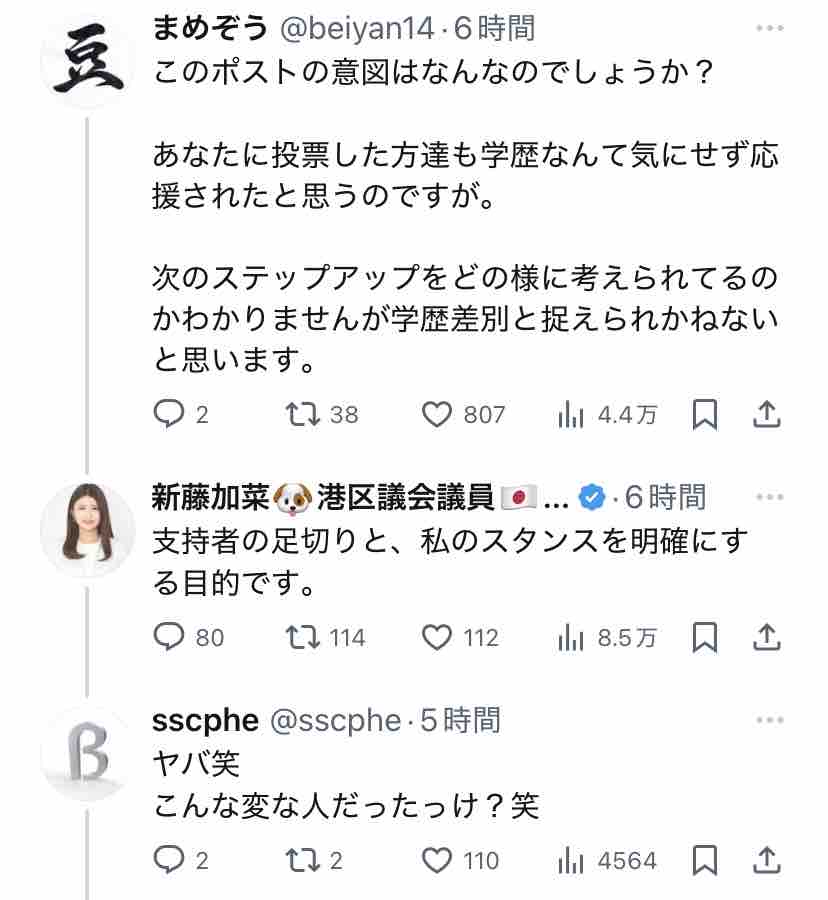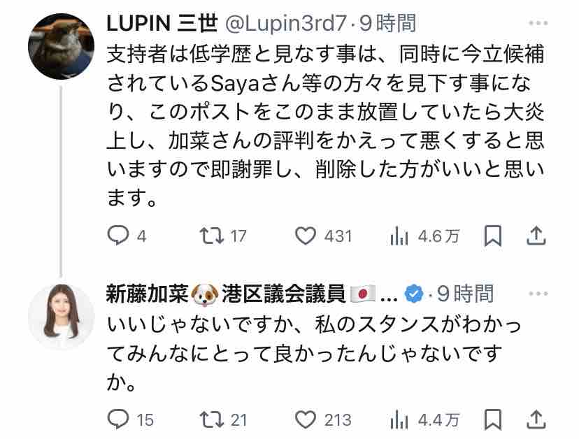 新藤加菜自身が言ってることに代入しただけですからね?