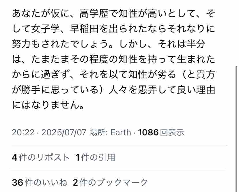 「性的魅力を切り売りしてた女性が何故かウヨい政治的発言をする様になったけど、他者には厳しい癖に自分が傷つくと泣き言 & お気持ち表明」