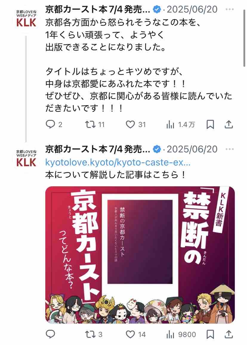 『「一線を超えてしまった」“京都カースト”をテーマにした新刊が物議 “炎上商法”への疑念も…出版社が声明、販売の意向』