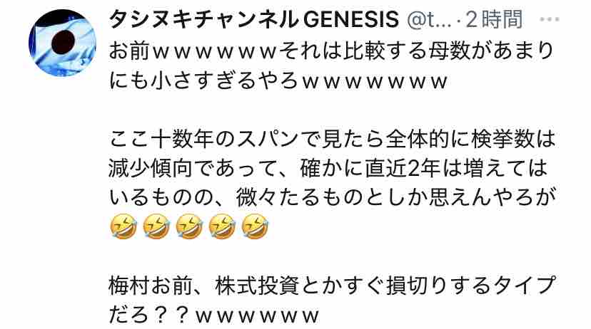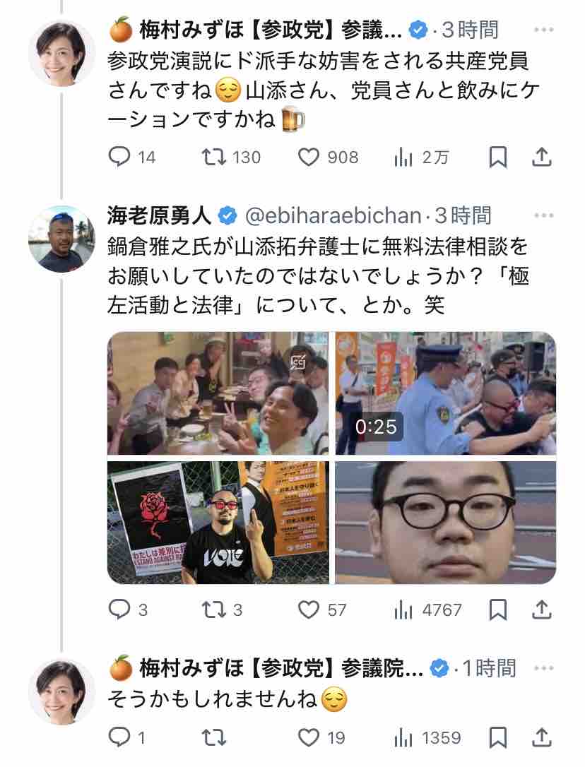 そして梅村みずほのポストへのリプライが↓コレ(表示順)。