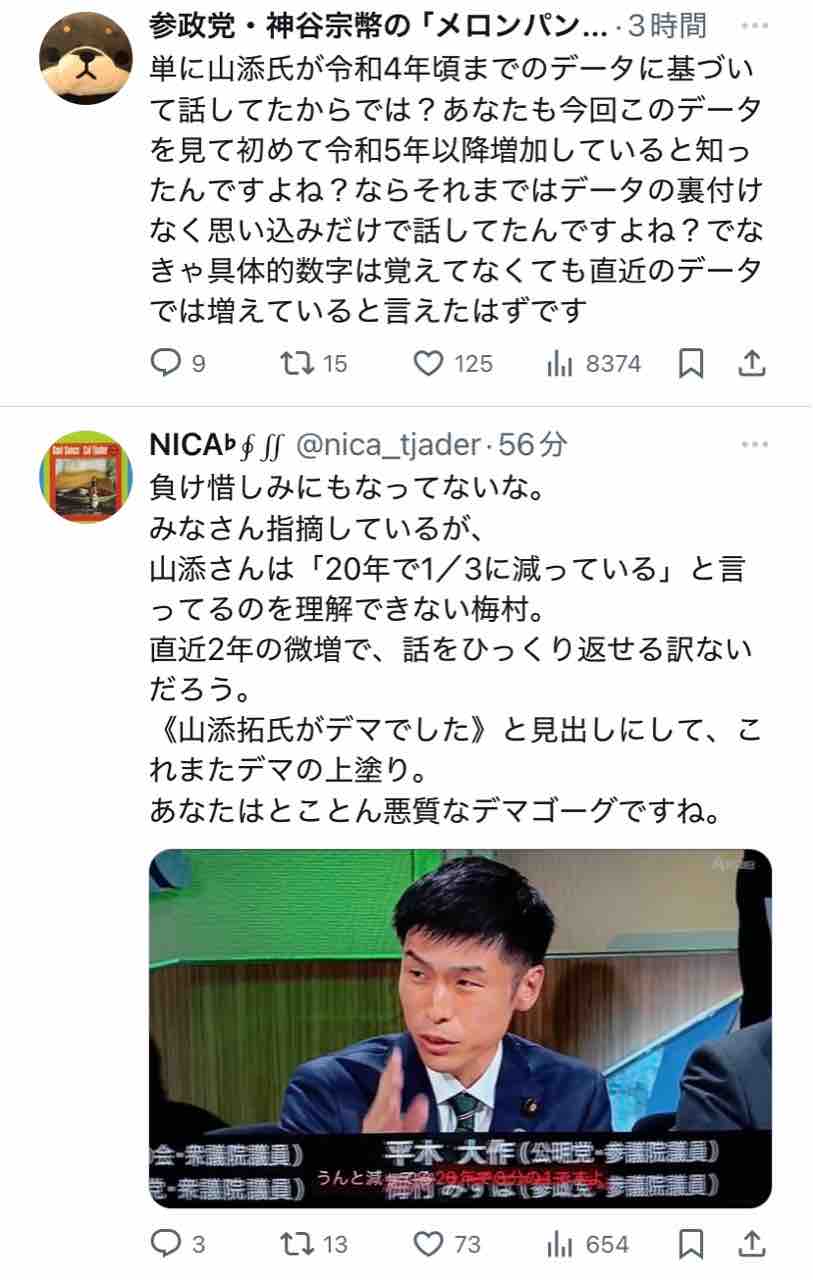 『【動画】参政党・梅村みずほ、共産山添らに論破されるたびに「民意を得たのはどっちだ!」とマウントを披露し対話不可能』