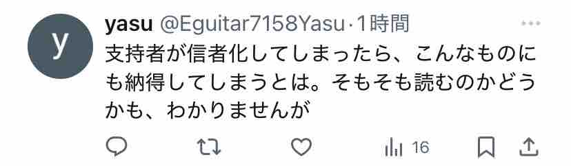 信者による擁護が少なく、批判側はキレッキレ。